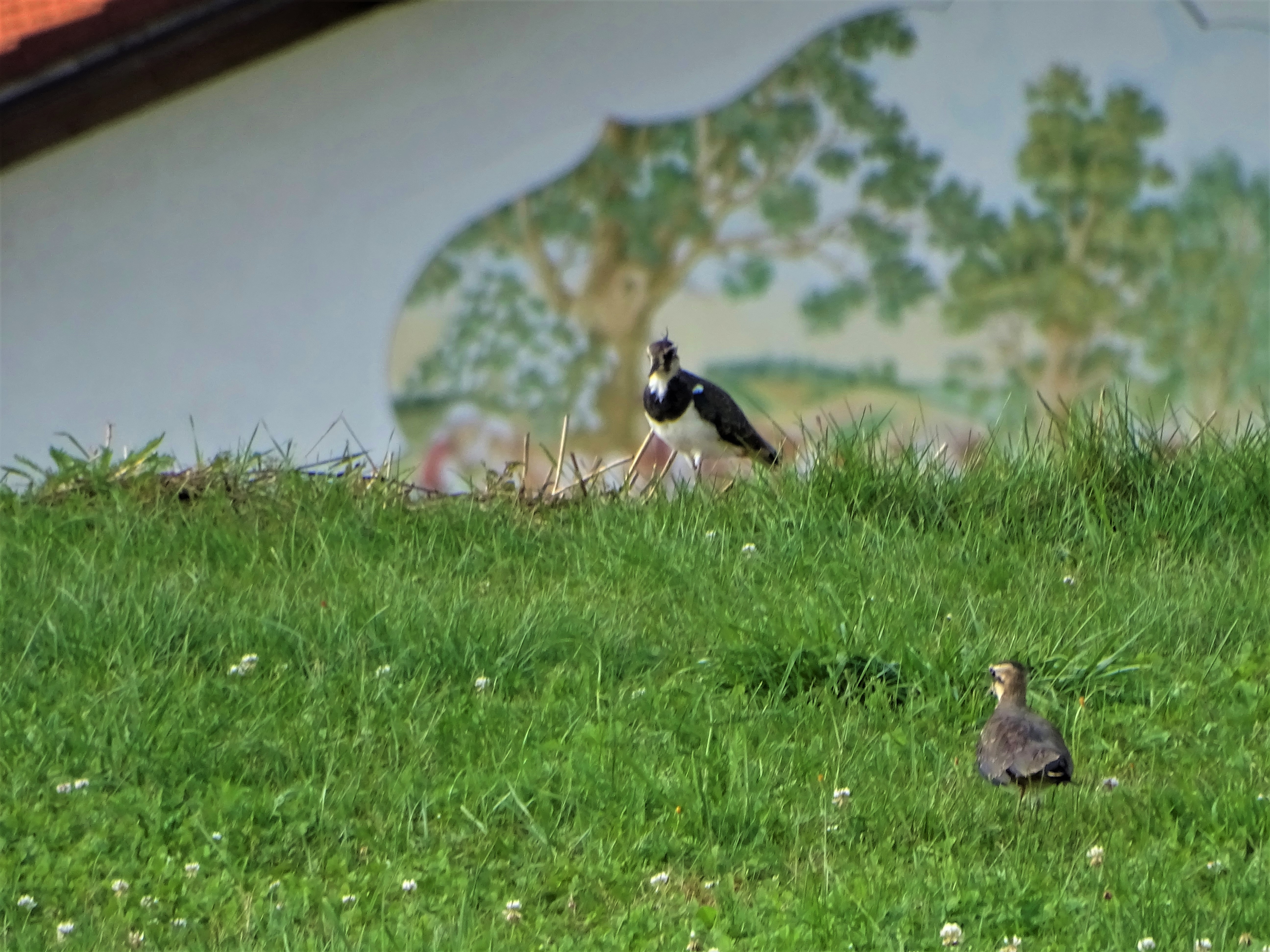 Kiebitze vor einem Landschaftsgemälde. Welch eine Kulisse!