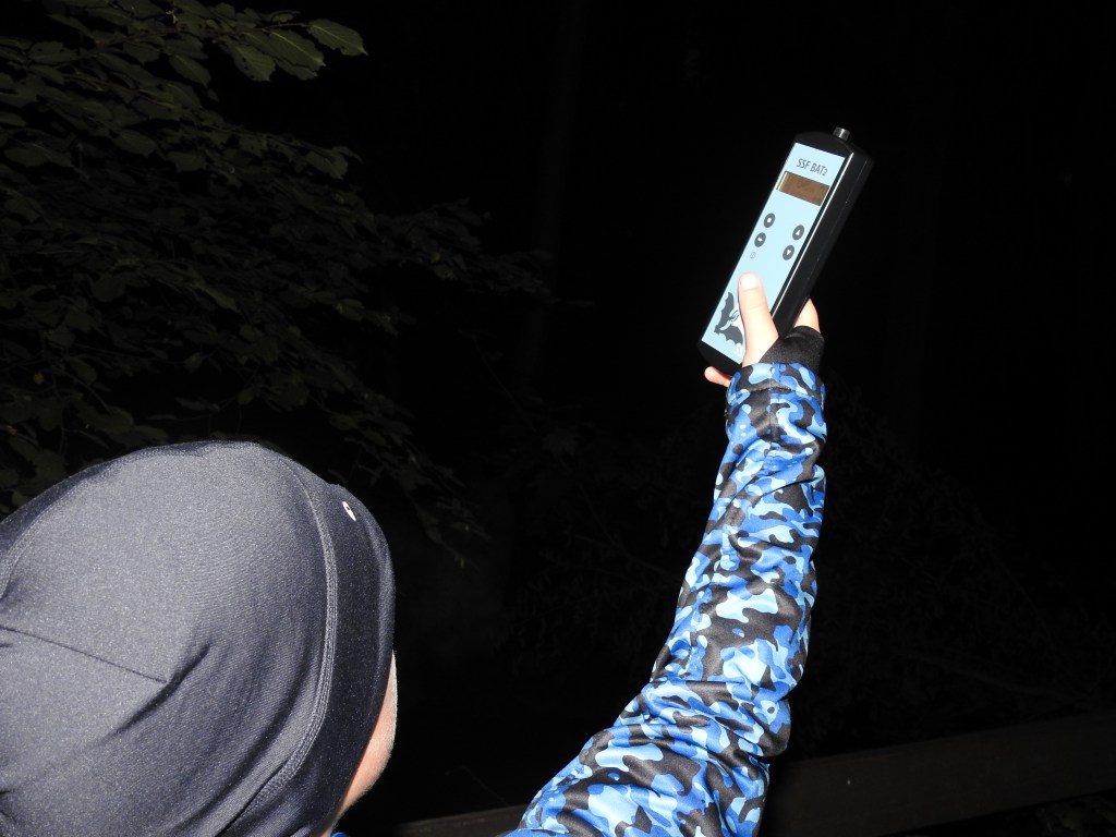 Da die nachtaktiven Tiere zur Orientierung Ultraschall-Laute ausstießen, die für Menschen unhörbar seien, verteilte Dr. Friemel sogenannte „Bat-Detektoren“, elektronische Geräte, mit deren Hilfe die Tiere aufgespürt werden können. Da die Rufe sich stark zwischen den Arten unterschieden, sei es möglich, anhand der Ruffrequenz die jeweilige Art zu bestimmen.