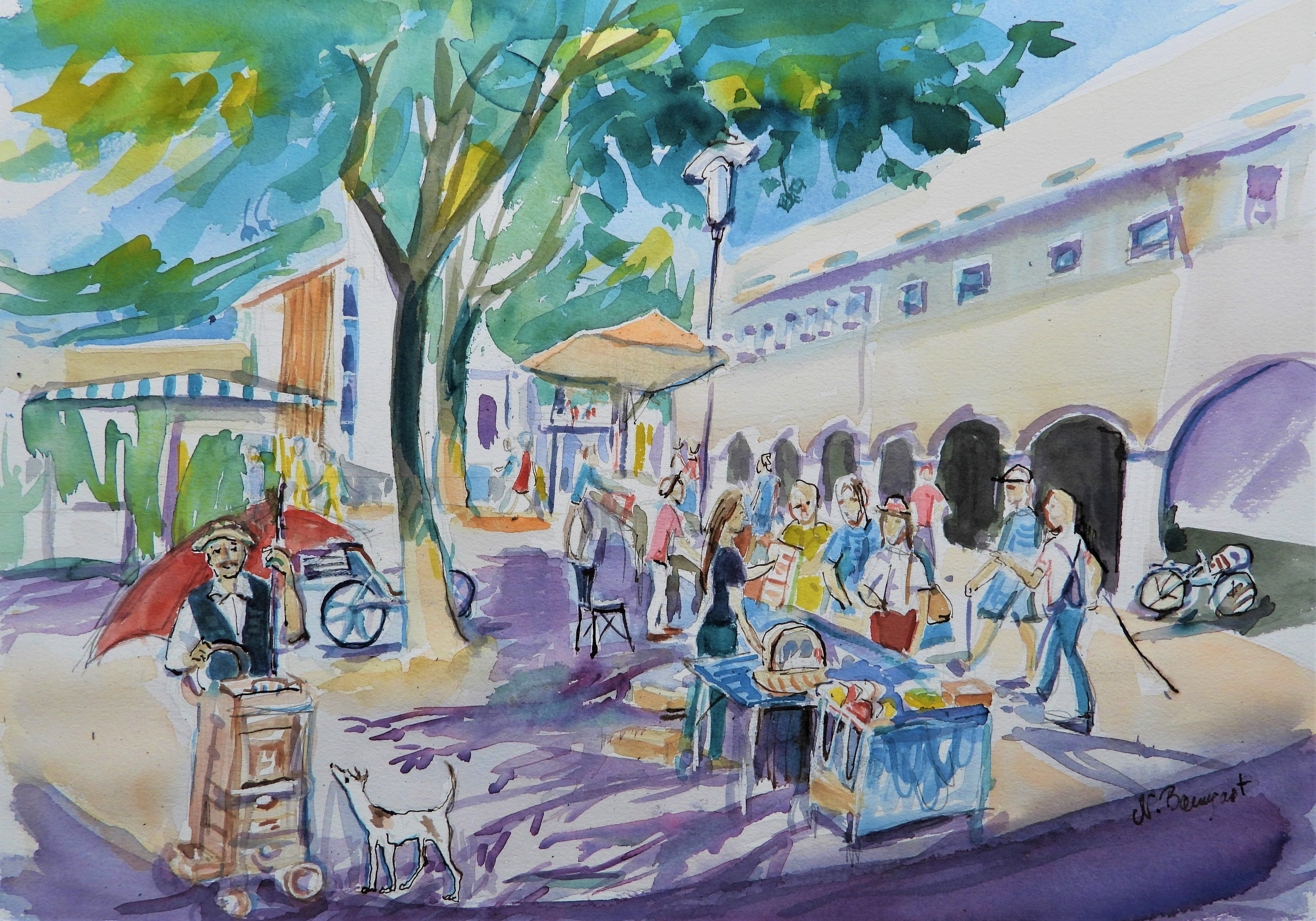 << Une aquarelle montrant notre marché en échange de la belle céramique de Bunzlau.>>