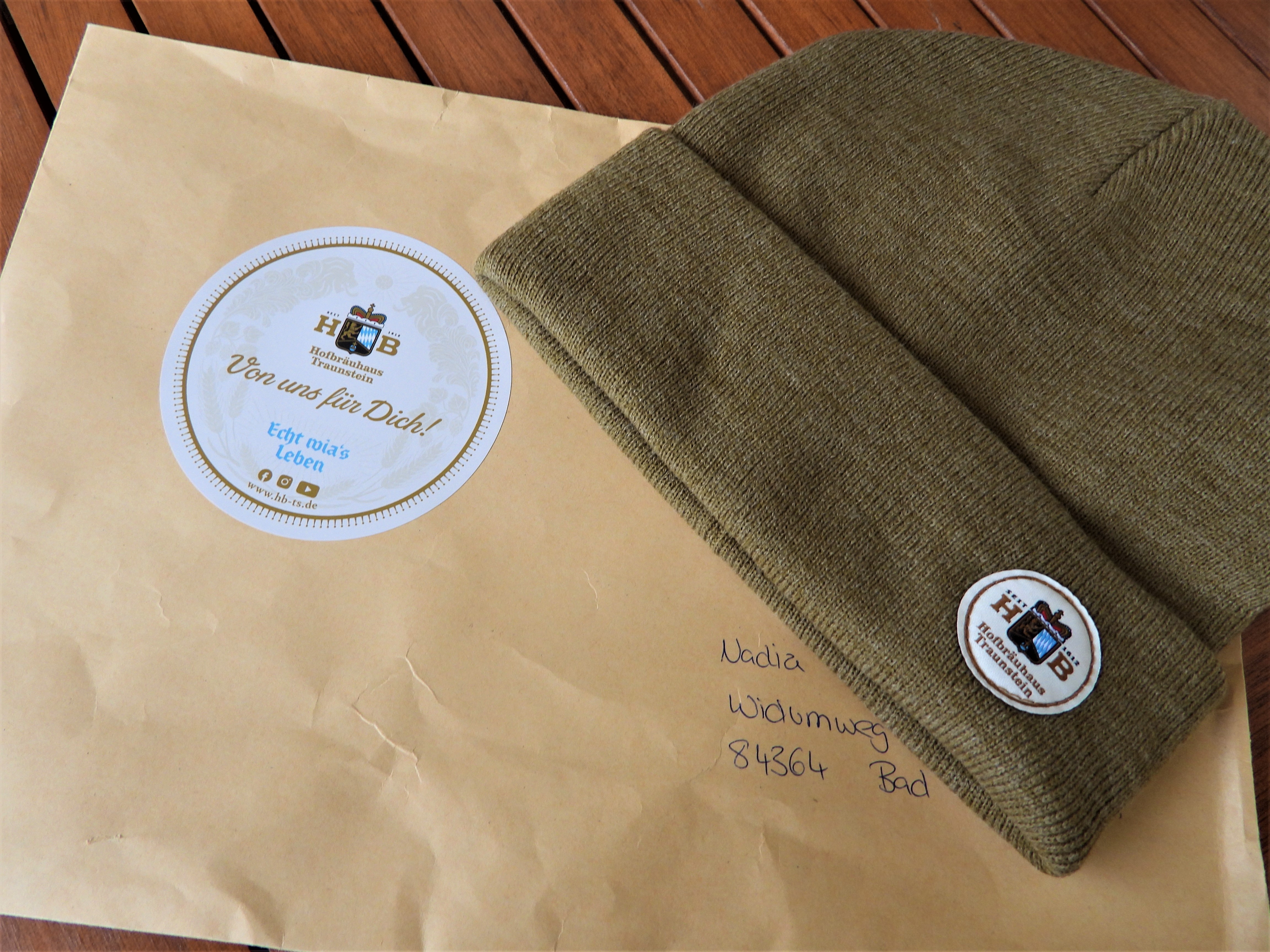 Nachtrag: Weil ich das Fuhrwerk gemalt habe, hat mir das Hofbräuhaus Traunstein die kultige Strickmütze geschickt. Danke dafür!!