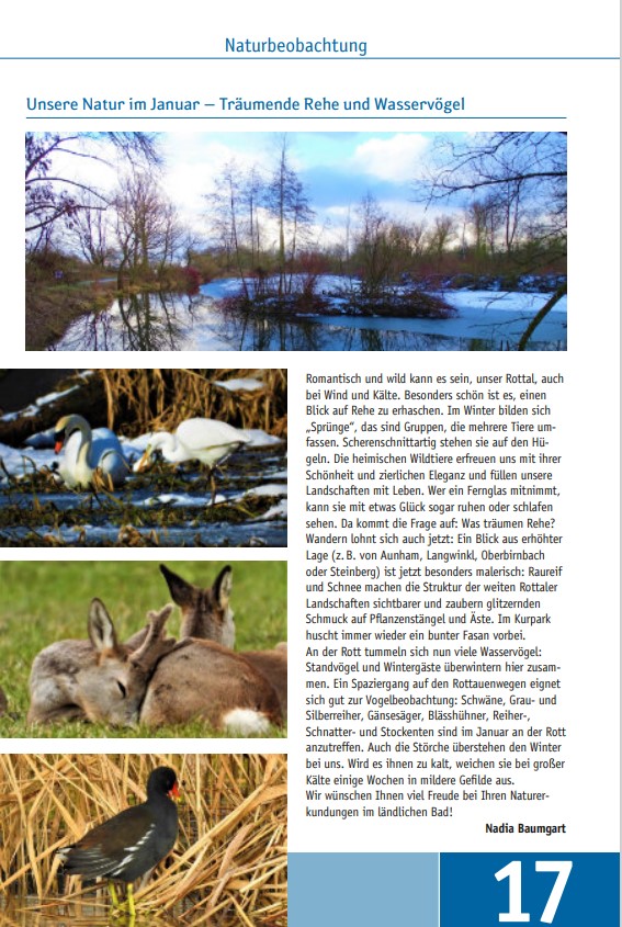 Nun endet das Jahr und alles beginnt von Neuem: Der Januar steht vor der Tür und bringt neue Erlebnisse und Naturbeobachtungen. Im Kulturspatz habe ich wieder versucht, einige Aspekte unserer Natur im Rottaler Winter aufzuzeigen. Hier einige Fotos aus unserer Region. Unsere Birnbacher Störche haben übrigens 2021 im Schnee ausgeharrt, bis es ihnen zu ungemütlich wurde: Mitte Januar flogen sie in mildere Gefilde. Im März 2021 waren sie wieder in ihrem Nest auf dem alten Brauereikamin.