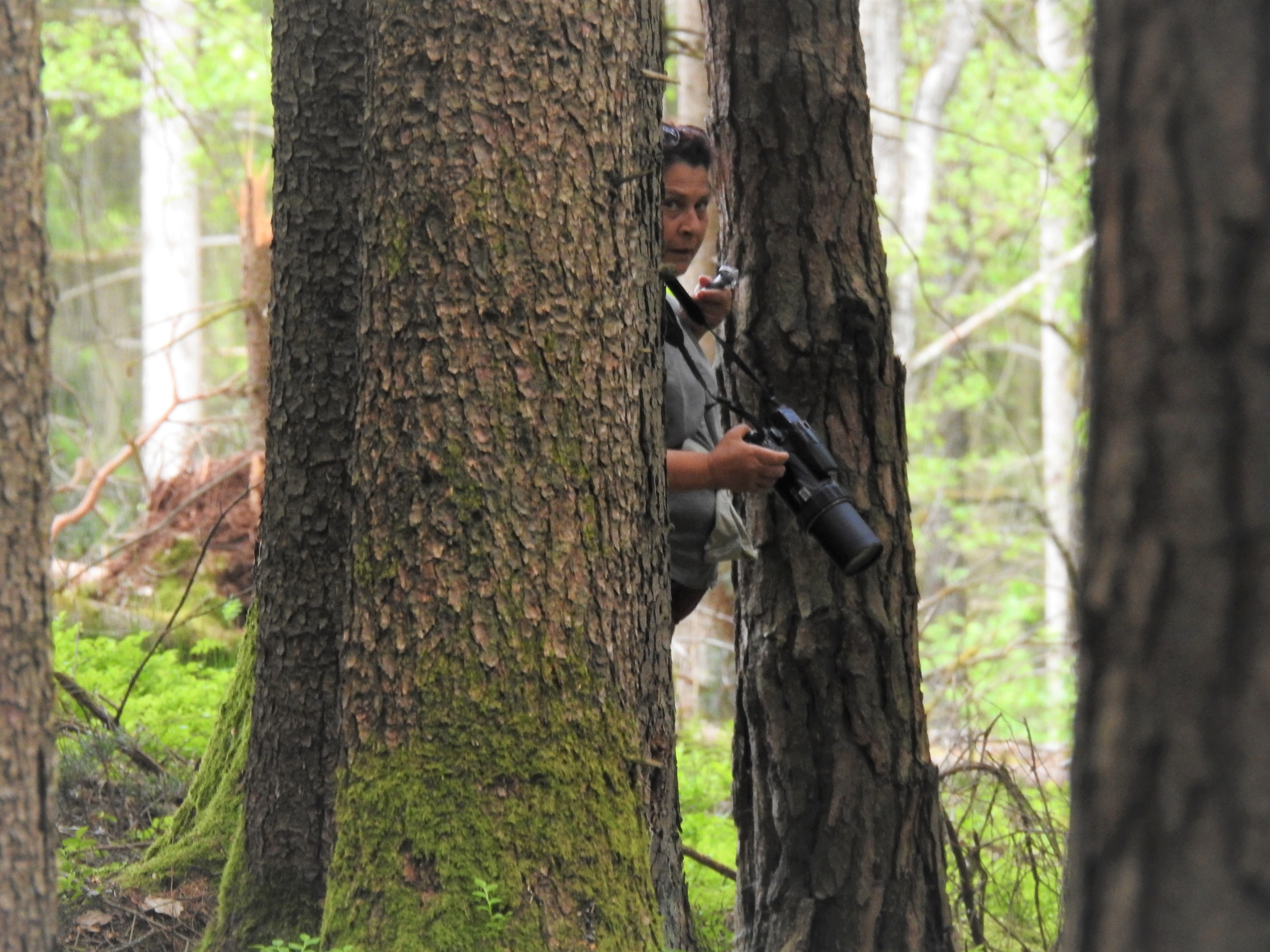 Ich achte aber auch immer darauf, den Tieren nicht zu nah zu kommen. Mein Kamera-Zoom erlaubt mir, mit dem Auge ganz nah zu kommen. Auch ein Fernglas kann sehr hilfreich sein, Tiere aus sicherer Distanz zu beobachten. Letztens hatte ich zwei unschöne Erlebnisse: Ein Hund jagte die trächtige Häsin, die mir vor einigen Tagen über den Weg gelaufen war. Und gestern beobachtete ich ein Reh, ruhig ging es durch das Unterholz, als plötzlich hinter ihr ein Wanderer auftauchte. Das Tier sprang panisch auf und raste davon. Der Wanderer war quer durch den Wald gelaufen, das Reh und die panikartige Flucht waren ihm nicht aufgefallen. Es ist wichtig, gerade jetzt in der Setzzeit auf den Wegen zu bleiben. Wildtiere kennen den Verlauf von Wanderwegen und erschrecken weniger, wenn dort Menschen auftauchen. Geht man quer durch das Gebüsch, fühlen sich die Wildtiere sehr gefährdet.