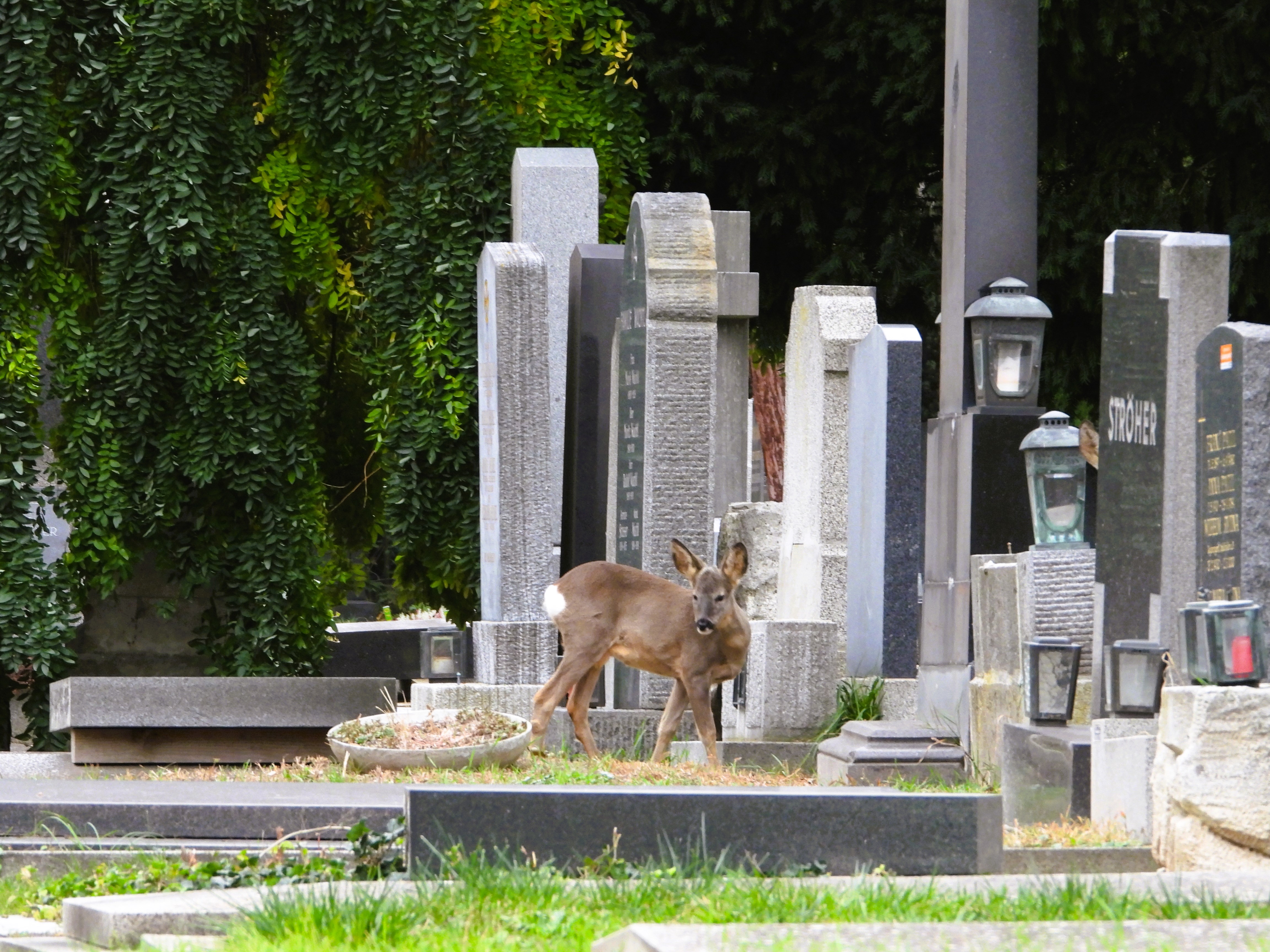 Auch Ängste um die Zukunft hatte ich dabei. Wie geht es weiter mit dieser Welt? Da erschienen plötzlich Rehe zwischen den Gräbern. Lautlos. Vertrauensvoll. Wunderschön. Eine ältere Dame pflegte ein Grab, während die Rehe ruhig an ihr vorbeizogen. „Kommen Sie nur näher!“, rief sie mir lachend zu. „Die haben keine Angst!“.