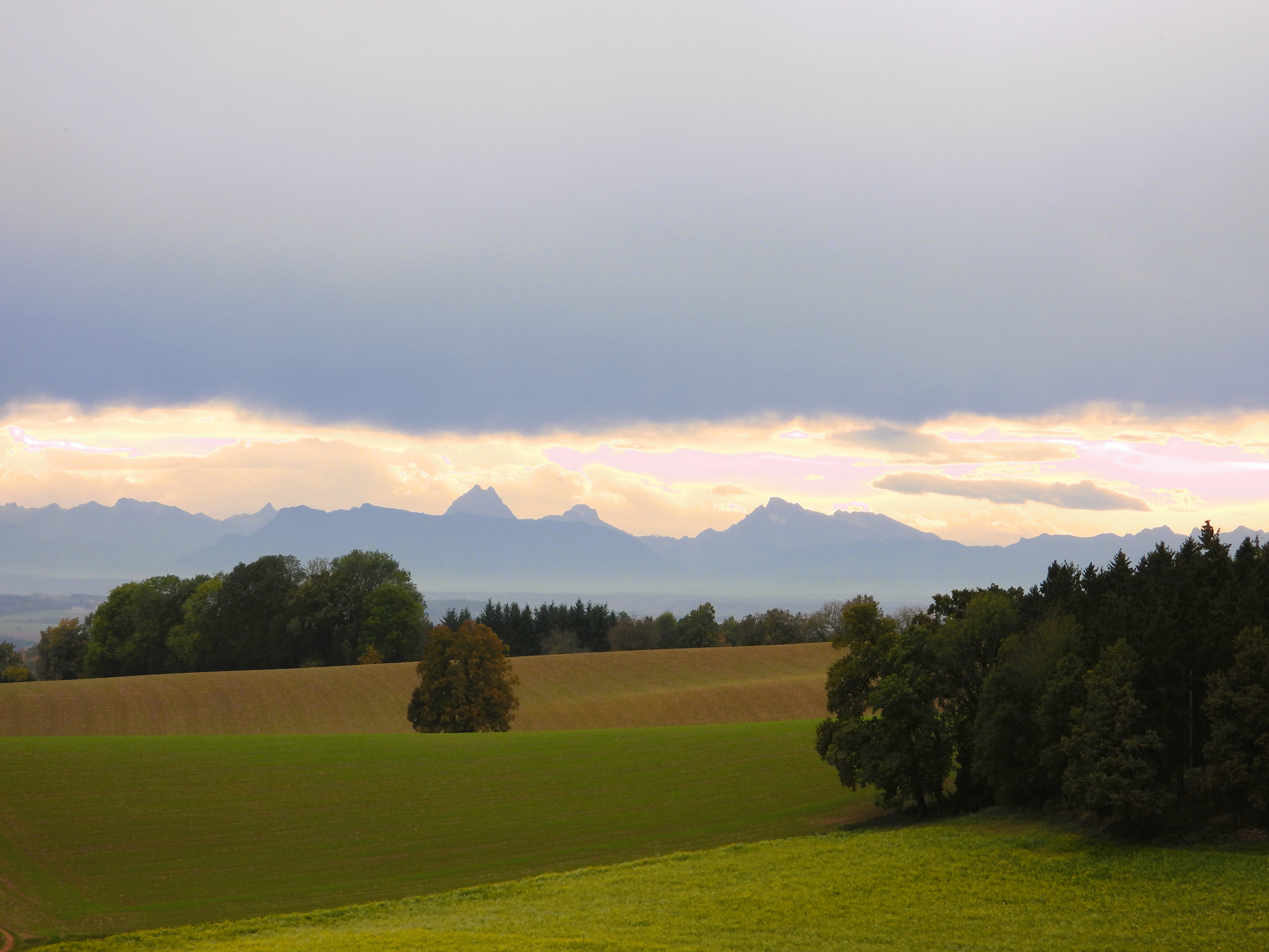 Was für stimmungsvolle Farben!Sicht auf die Alpen bei Malching