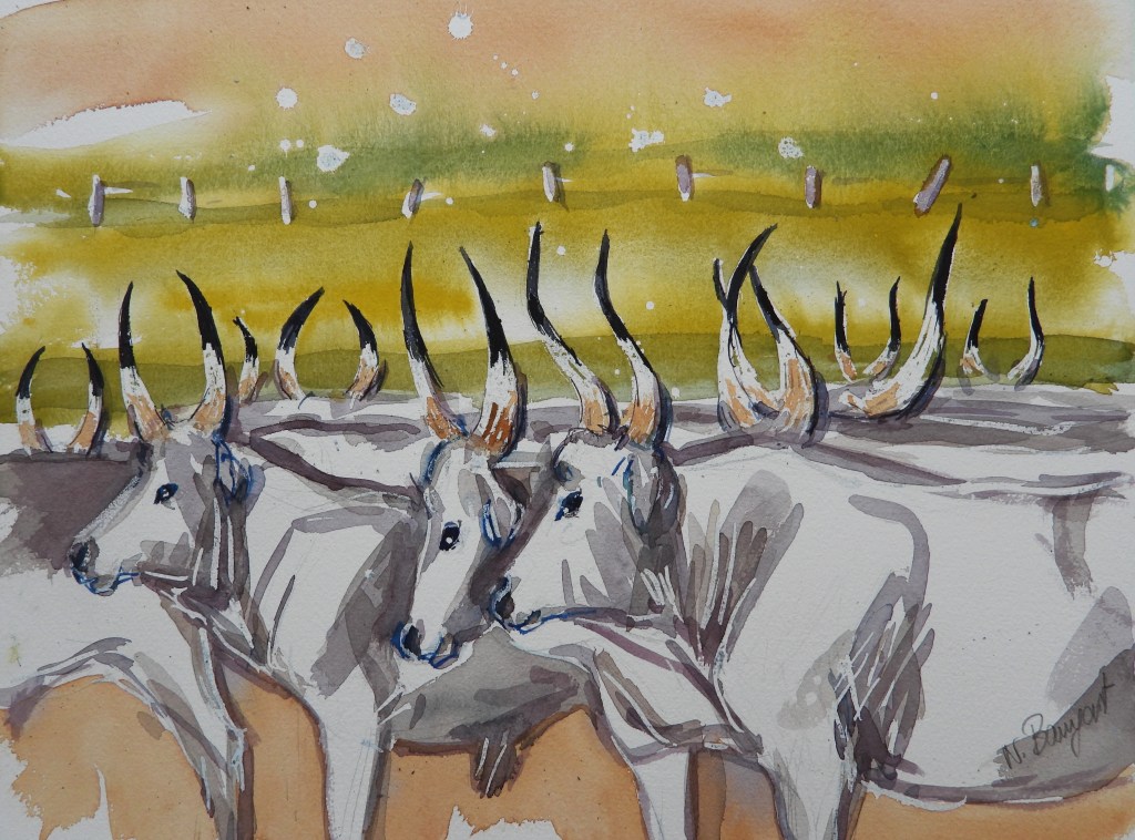 Ungarisches Steppenrind – Bœuf gris de Hongrie – Hungarian Steppe Cattle – Aquarelle