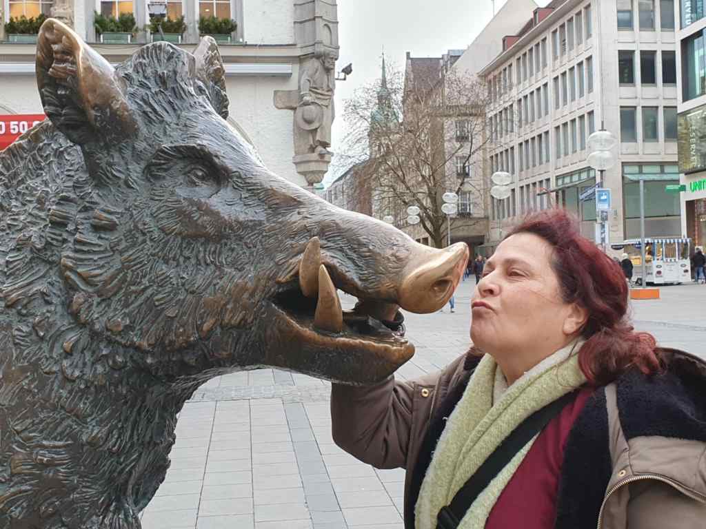 Der berühmte sitzende Keiler erinnert einen daran, dass auch Großstädter „wild“ sein können. Einen Kuss hat er verdient.