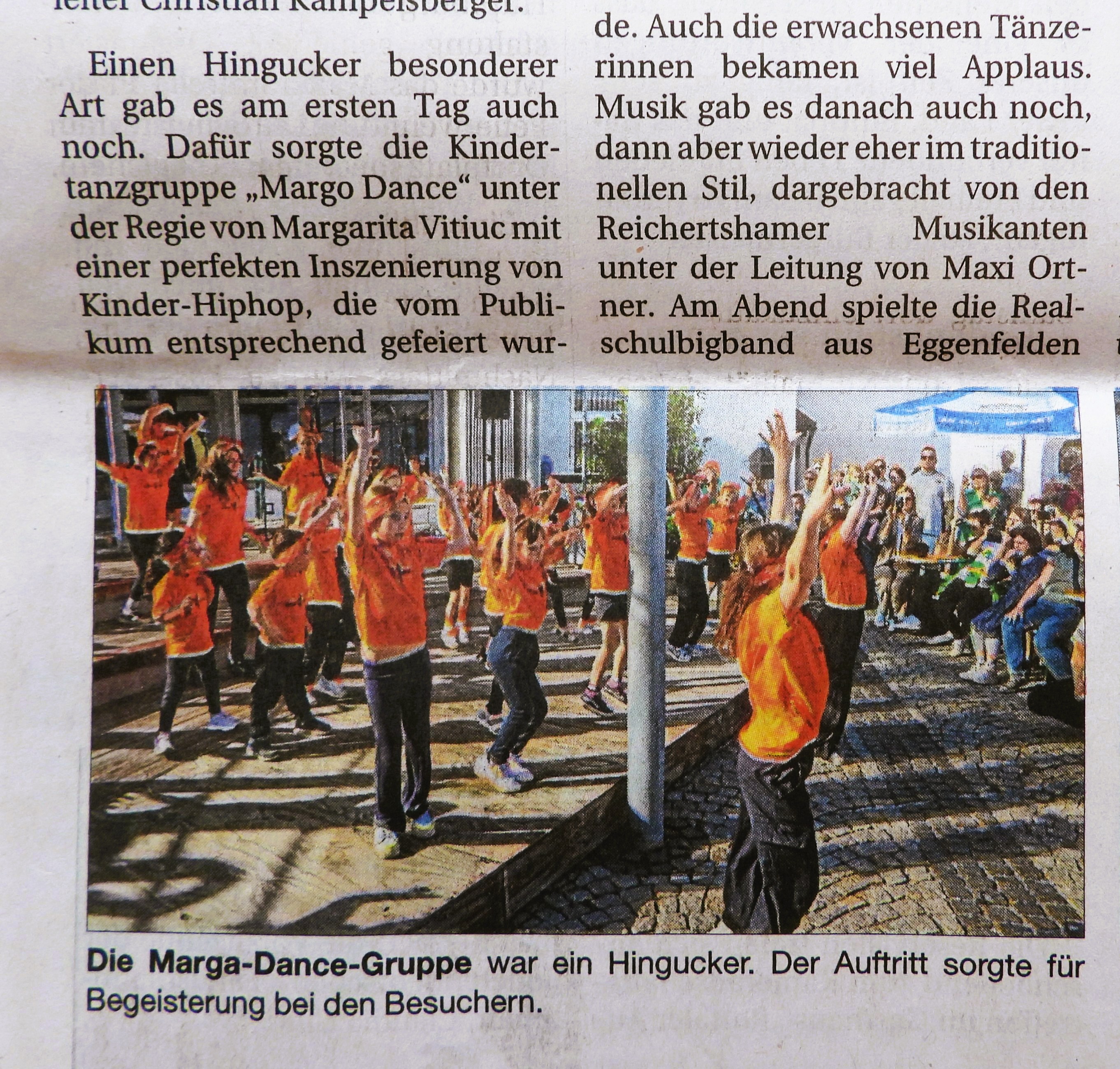 Es trafen heute „Die Reichertshamer Musikanten„, eine sehr gute und junge Bayerische Volksmusik Gruppe, die inzwischen auch routiniert auf dem Karpfhamer Fest spielt auf die MARGODANCE Hip Hop – Tanzgruppe von Margarita. Und zwar auf derselben Bühne. Und ich bin Ehrenmitglied in beiden Gruppen! Wie schön, dass ich das, was zusammengehört, zusammenbringen darf! Alle waren total begeistert!