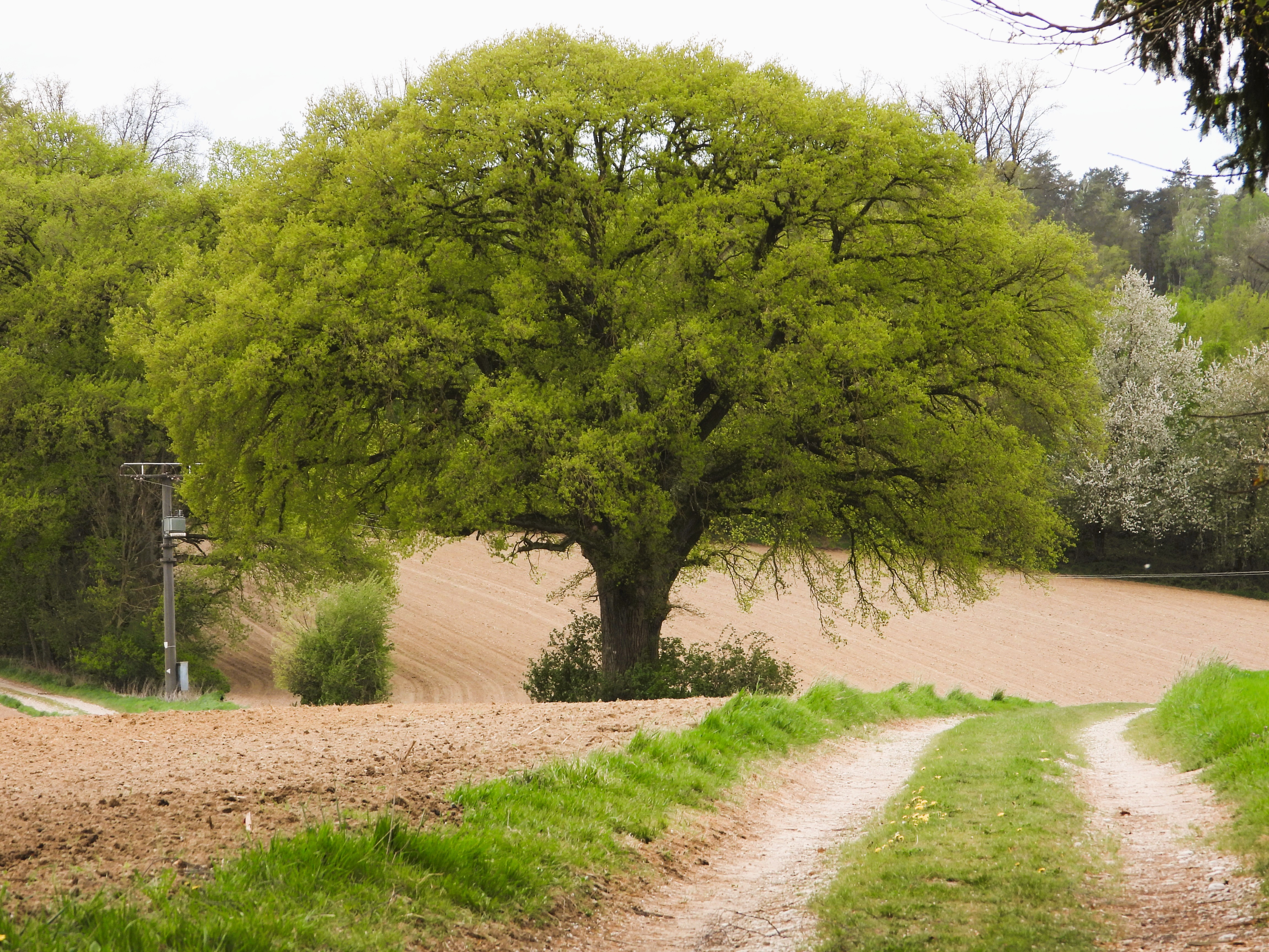Besuch bei unserer Lieblingseiche in der Nähe von Langwinkl. Sie ist so groß wie ein ganzer Wald, und der Wind rauschte laut durch ihre jungen Blätter. Wir besuchen sie in allen Jahreszeiten.