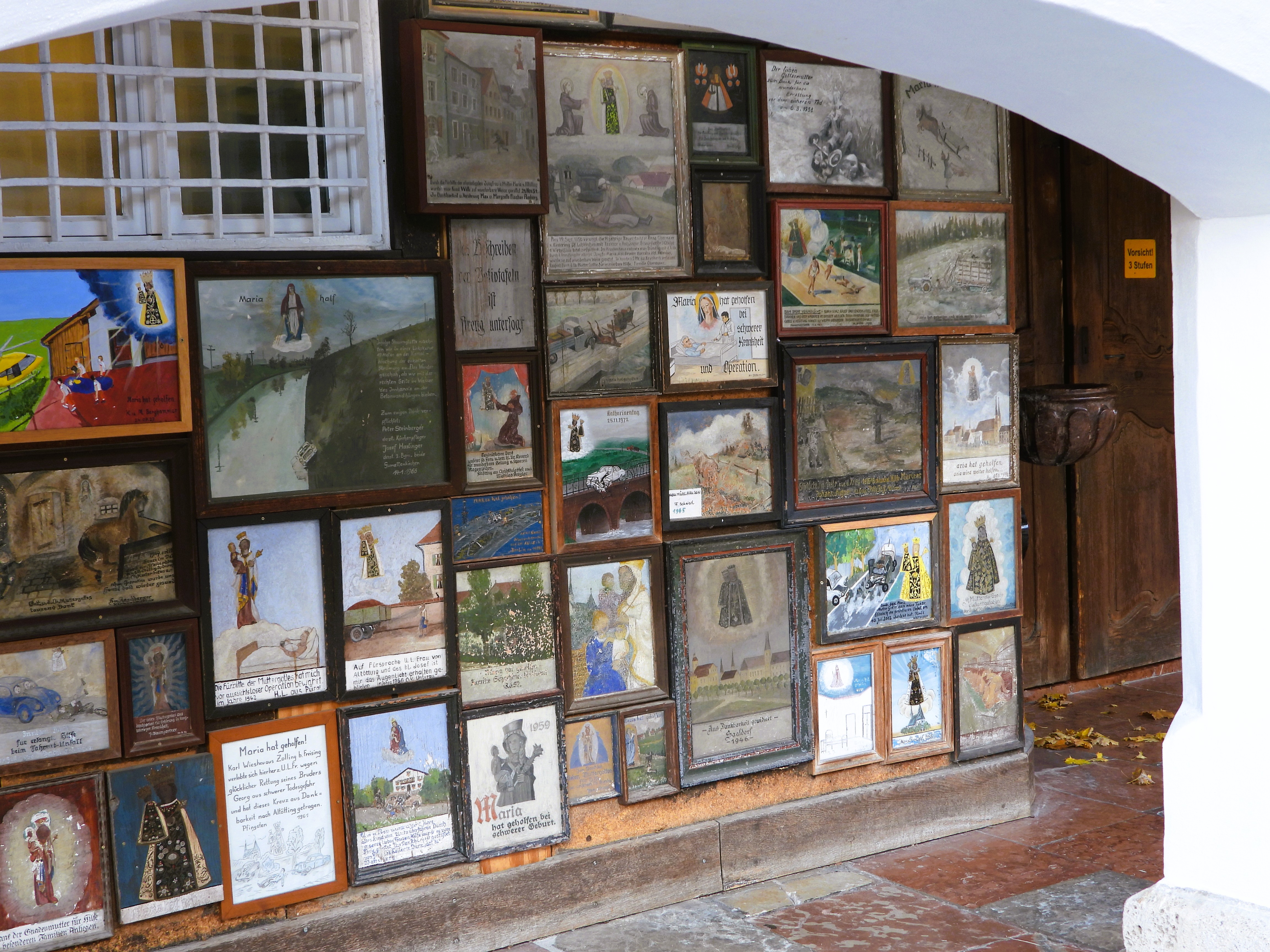 Gestern waren wir auf dem Kapellplatz in Altötting. An den Votivbildern im Rundgang um die Gnadenkapelle kann ich mich nie satt sehen. Da werden so viele Geschichten erzählt, in denen Angst im Vordergrund stand (Krankheit, Unfall, Armut, Krieg…) und am Ende alles gut ging. „Maria hat geholfen“. Hier gibt es immer ein „Happy End“; die Dankbarkeit, die dann zum Ausdruck kommt, berührt mich.