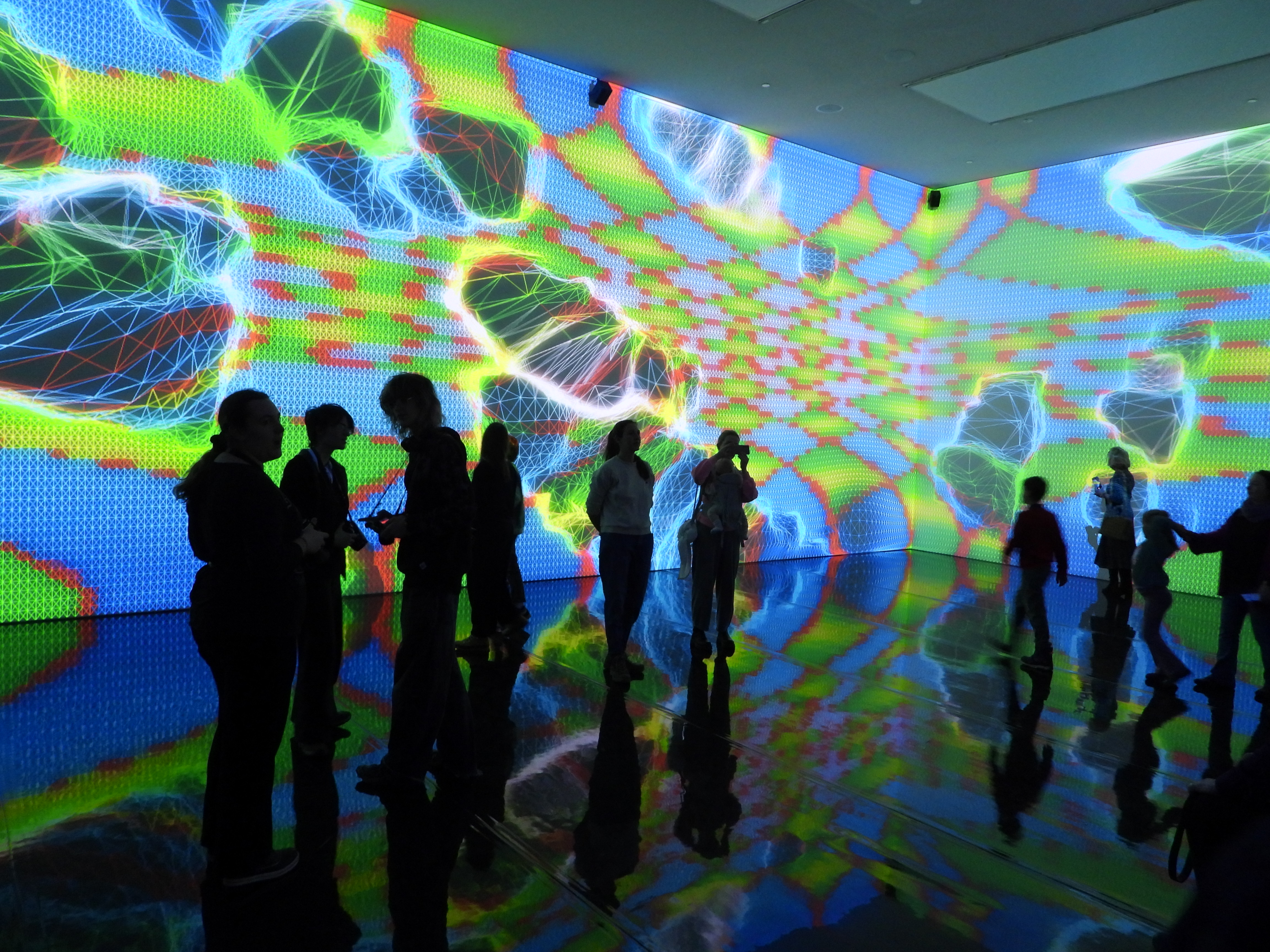 Die Installationen sind interaktiv: Die Linien und Formen verschieben sich, wenn man mit der Hand an ihnen entlangfährt. Und es gibt noch viele andere Denk- und Sinnesimpulse. Auf jeden Fall sehenswert!