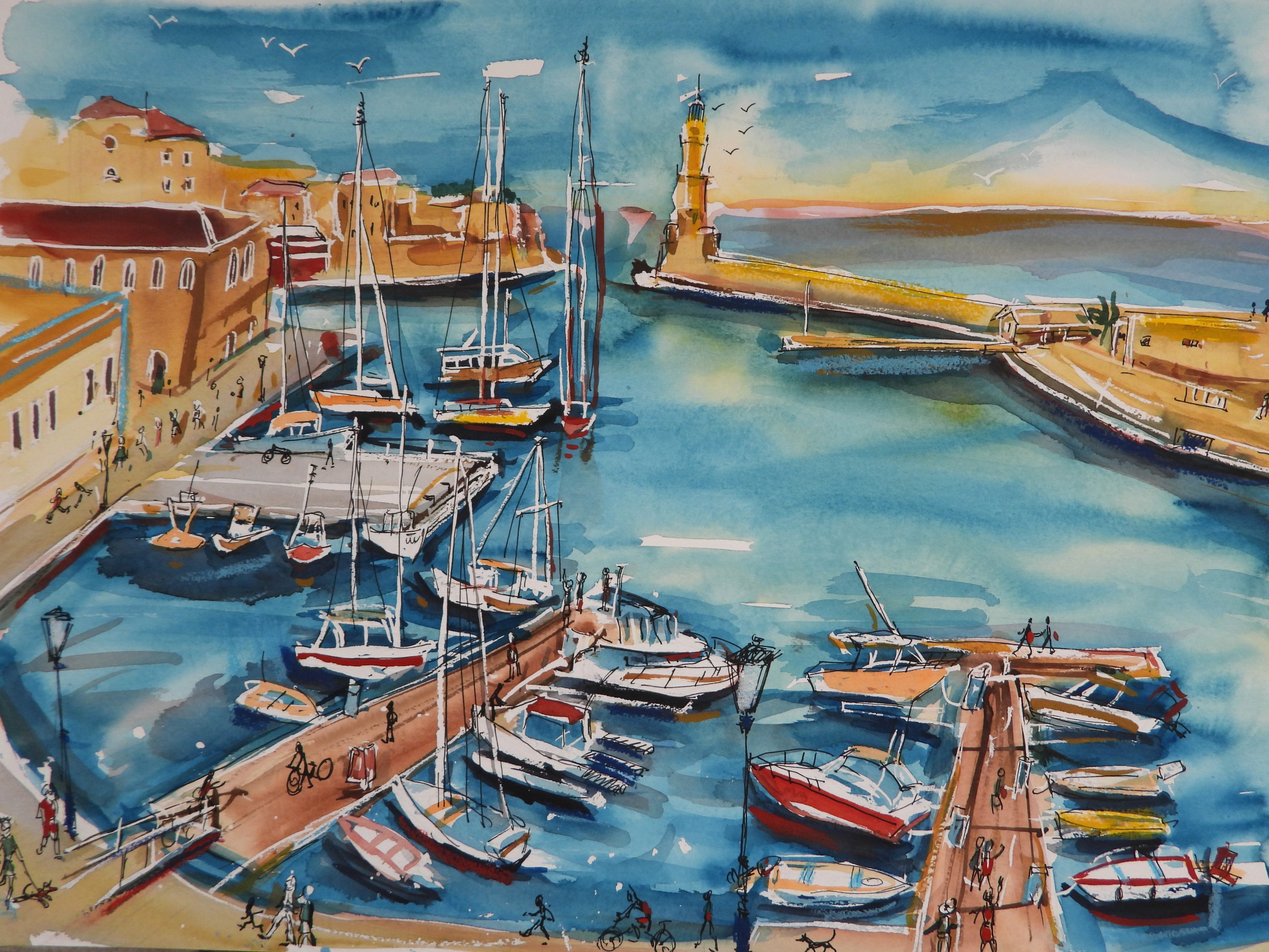 Der Venezianische Hafen in Chania – The old harbor in Vhania – Watercolorpainting