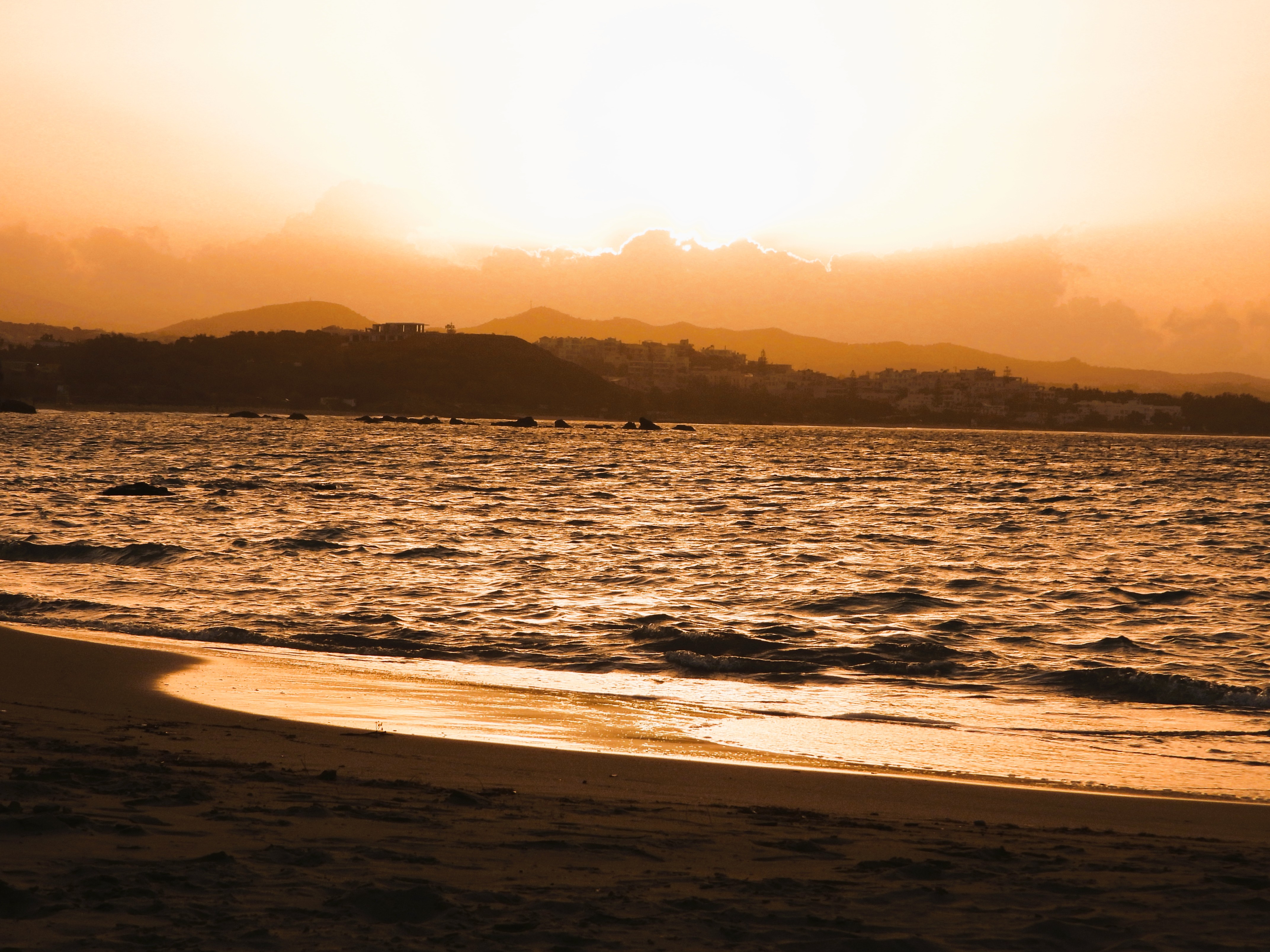 Ein wunderschöner Sonnenuntergang am Strand bei Chania