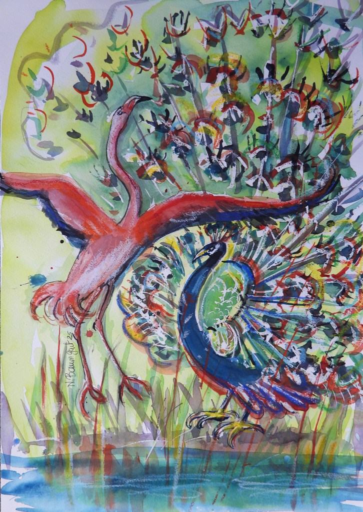 Zurzeit überarbeite ich Aquarelle, die ich schon vor einigen Jahren gemalt hatte. An diesem hatte ich besondere Freude, noch einmal Hand anzulegen, weil es so schön „explosiv“ wirkt; da war ich gleich besser gelaunt!