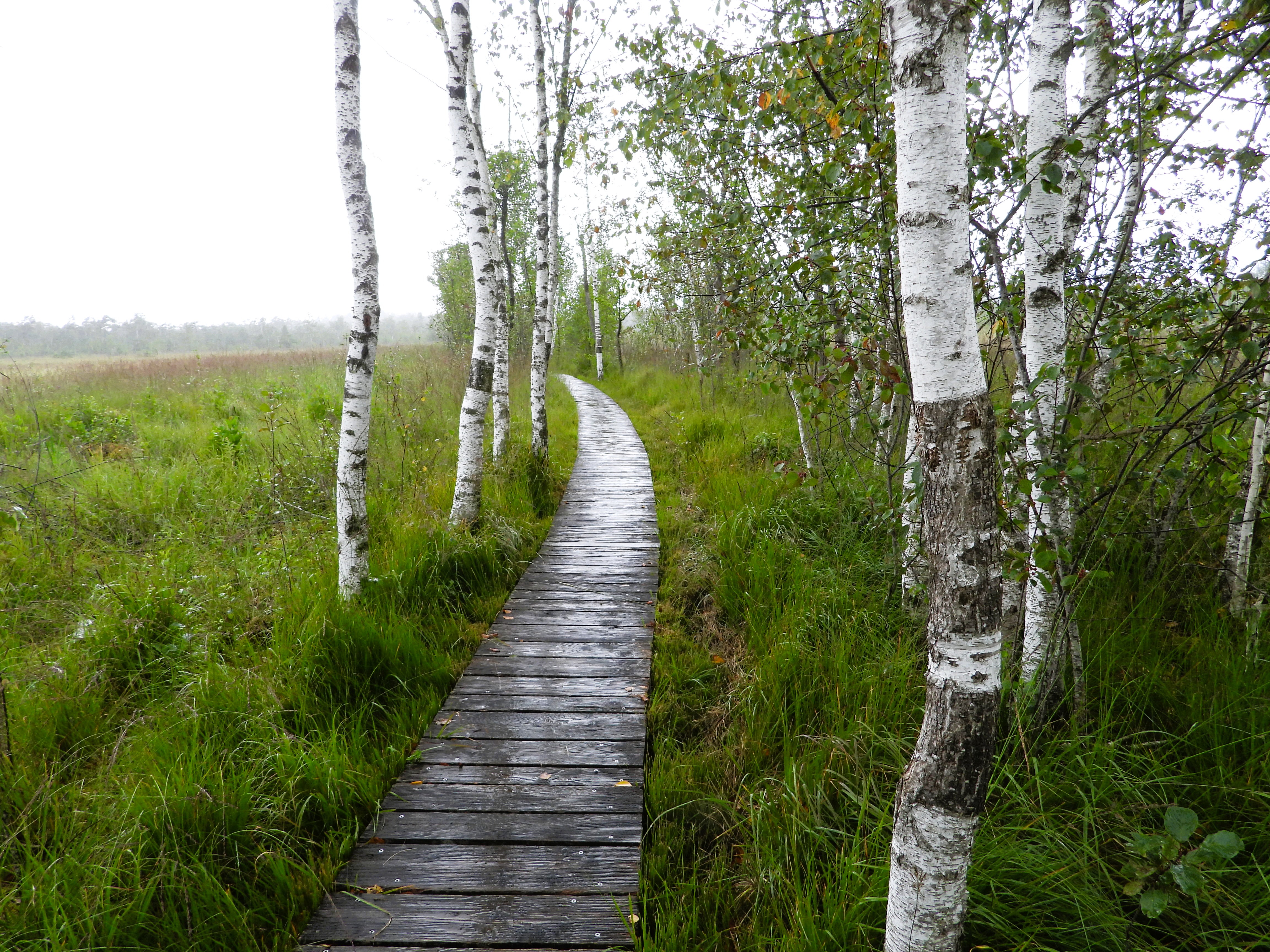 Das Ibmer Moor haben wir schon zu allen Jahreszeiten besucht. Aber noch nie an einem regnerischen August-Tag. Das hat auch seinen Reiz: alles sehr grün und am Ende des Holzstegs ein malerisch dampfendes Panorama in dramatischen Farben.