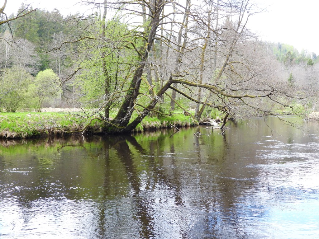 Mit dem sympathischen Ilz-Gebietsbetreuer Stefan Poost und einigen Naturliebhabern machen wir uns bei strahlendem Frühlingswetter auf den Weg. Die Ilz wird aufgrund ihres dunklen durch trübe Huminstoffe gefärbtes Wassers auch „Schwarze Perle“ genannt. Die Farbe wirkt in der Sonne manchmal rostrot, im Schatten tiefschwarz.