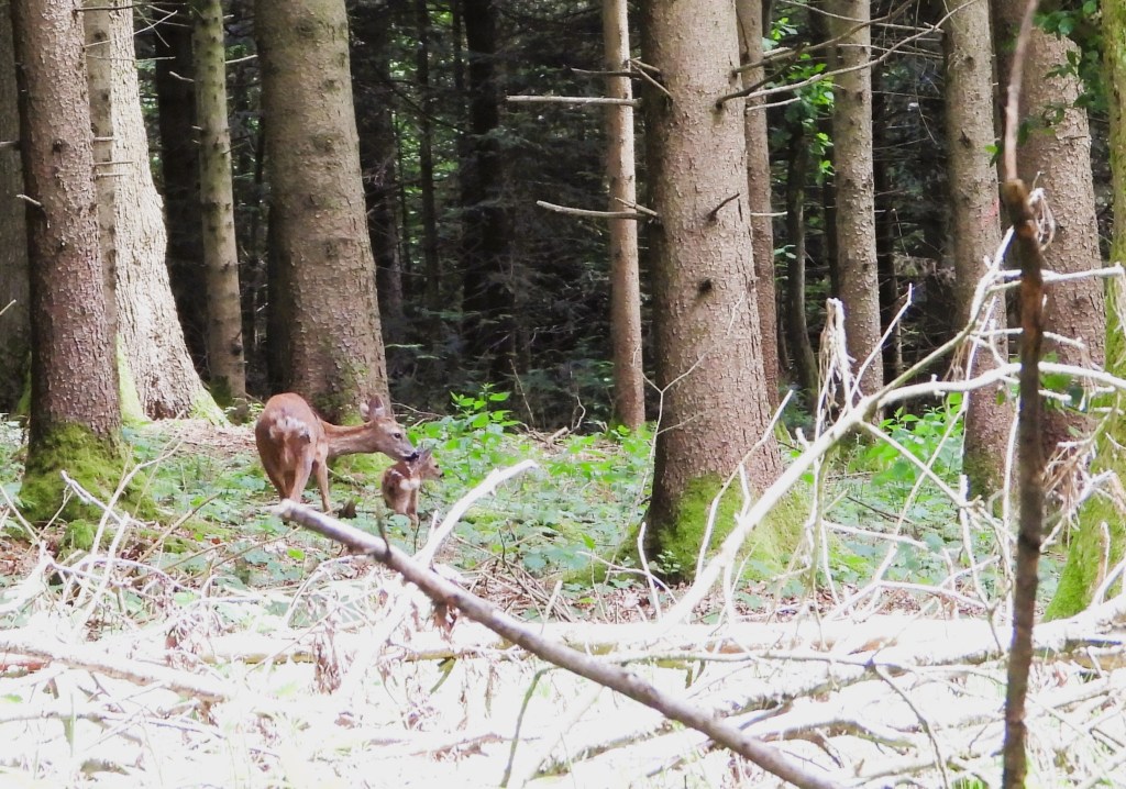 Wie rasch sich ein Naturwald selbst regenerieren kann, selbst nach einem massiven Borkenkäferbefall, habe ich persönlich erlebt. Oben ist eines meiner Fotos aus den Jahren 2019/2020, das einen Kahlschlag in der Lugenz zeigt – und zum Vergleich dieselbe Fläche im Juni 2025. Auf den einst gerodeten Flächen sprießen nun junge Birken und Büsche, die Schatten für nachkommende Bäume spenden. Dort, wo wenig eingegriffen wurde, hat sich ein dichter Teppich aus Jungbäumen gebildet, darunter viele Laubbäume. In einigen Jahren werden diese Bäume erneut Holz liefern – ein Zeichen dafür, dass die Lugenz immer großzügig mit uns Menschen ist.