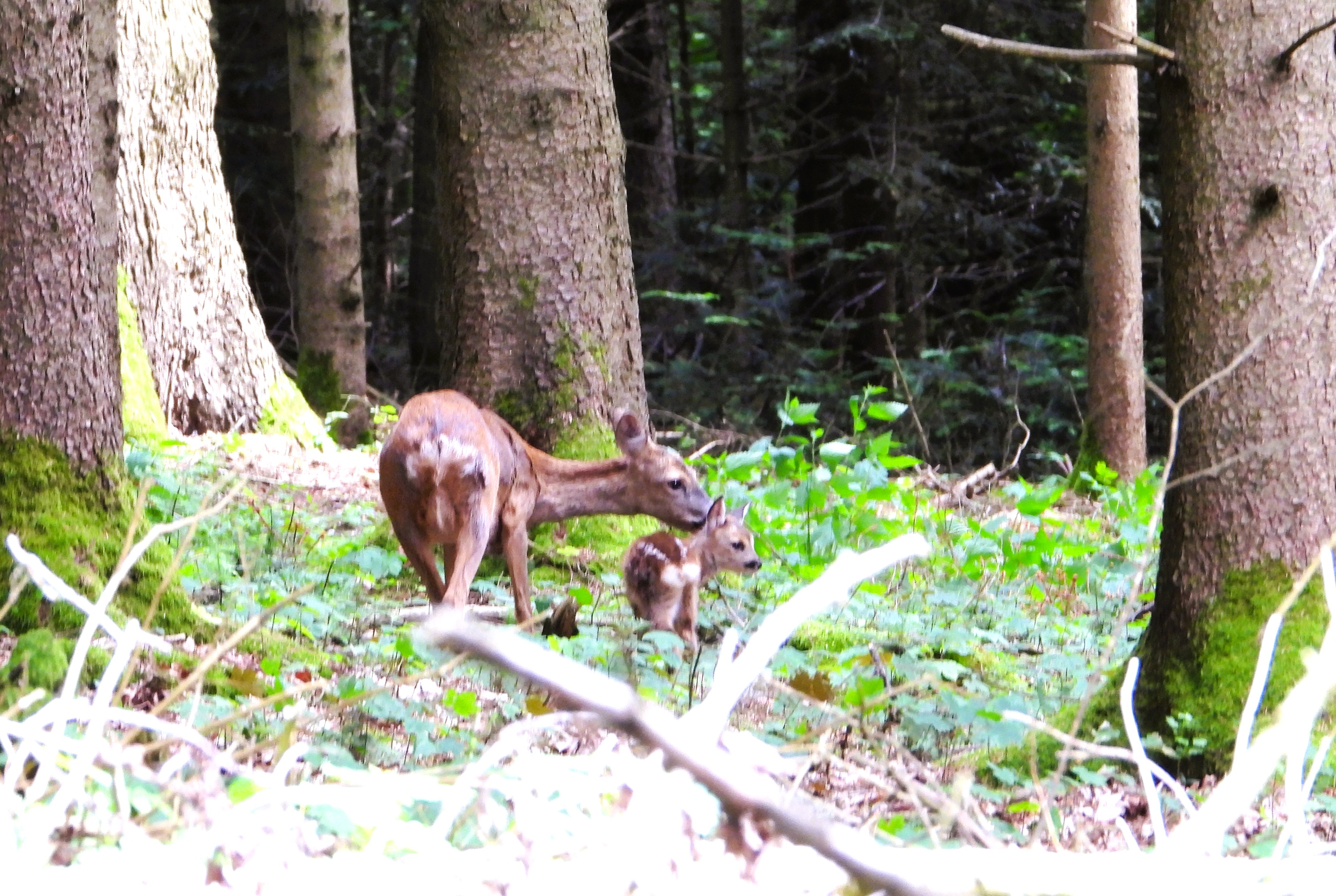 Wie rasch sich ein Naturwald selbst regenerieren kann, selbst nach einem massiven Borkenkäferbefall, habe ich persönlich erlebt. Oben ist eines meiner Fotos aus den Jahren 2019/2020, das einen Kahlschlag in der Lugenz zeigt – und zum Vergleich dieselbe Fläche im Juni 2025. Auf den einst gerodeten Flächen sprießen nun junge Birken und Büsche, die Schatten für nachkommende Bäume spenden. Dort, wo wenig eingegriffen wurde, hat sich ein dichter Teppich aus Jungbäumen gebildet, darunter viele Laubbäume. In einigen Jahren werden diese Bäume erneut Holz liefern – ein Zeichen dafür, dass die Lugenz immer großzügig mit uns Menschen ist.