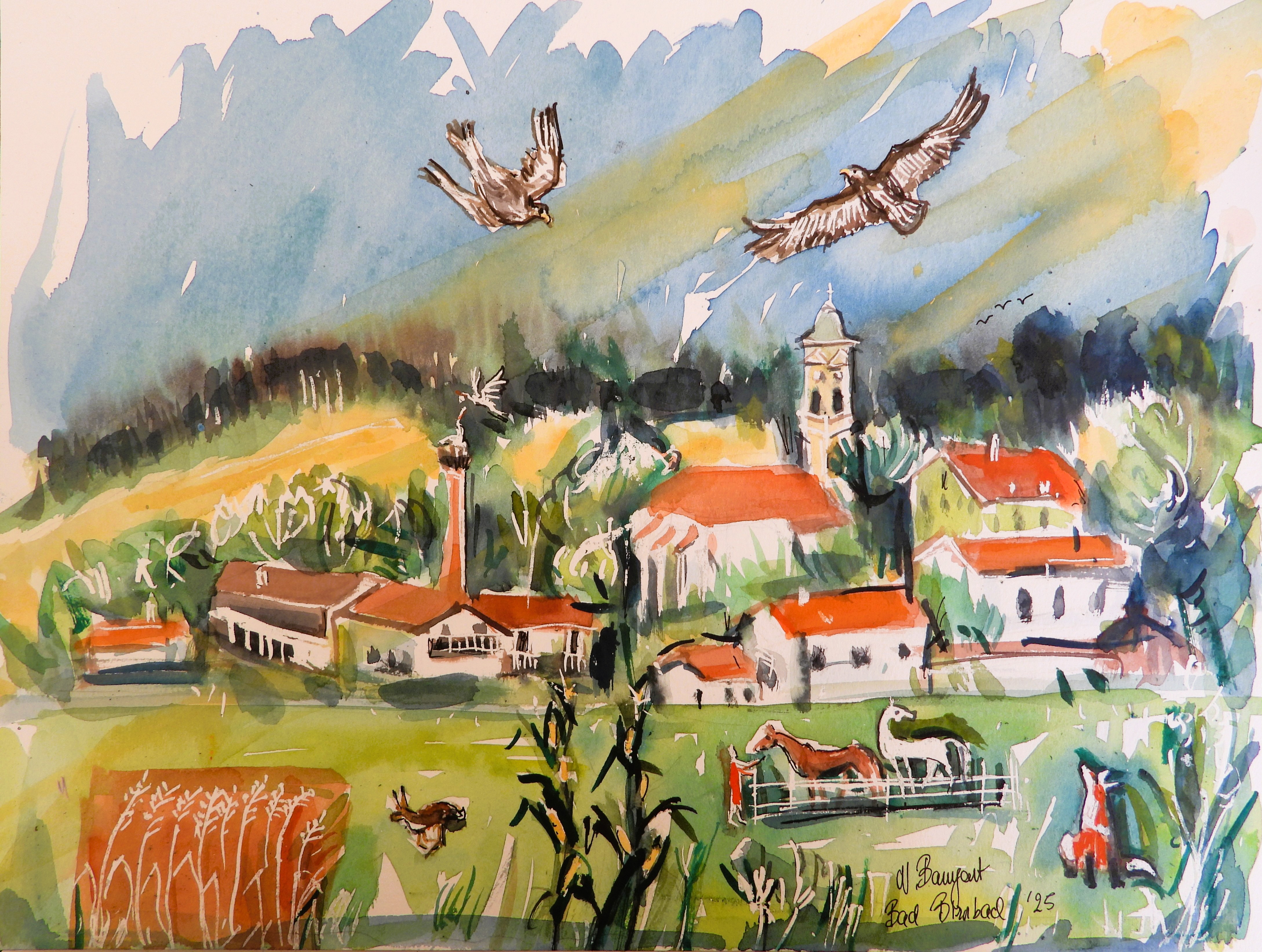 Rottaler Landschaft mit Bussard Veröffentlicht am 3. August 2025 von Nadia Baumgart Rottaler Landschaft mit rotem Bussard – Aquarell – Aquarellmalerei mit Pastell – Watercolorpainting Teilen mit: Klicke, um auf X zu teilen (Wird in neuem Fenster geöffnet) X Klick, um auf Facebook zu teilen (Wird in neuem Fenster geöffnet) Facebook Gefällt mir Wird geladen …