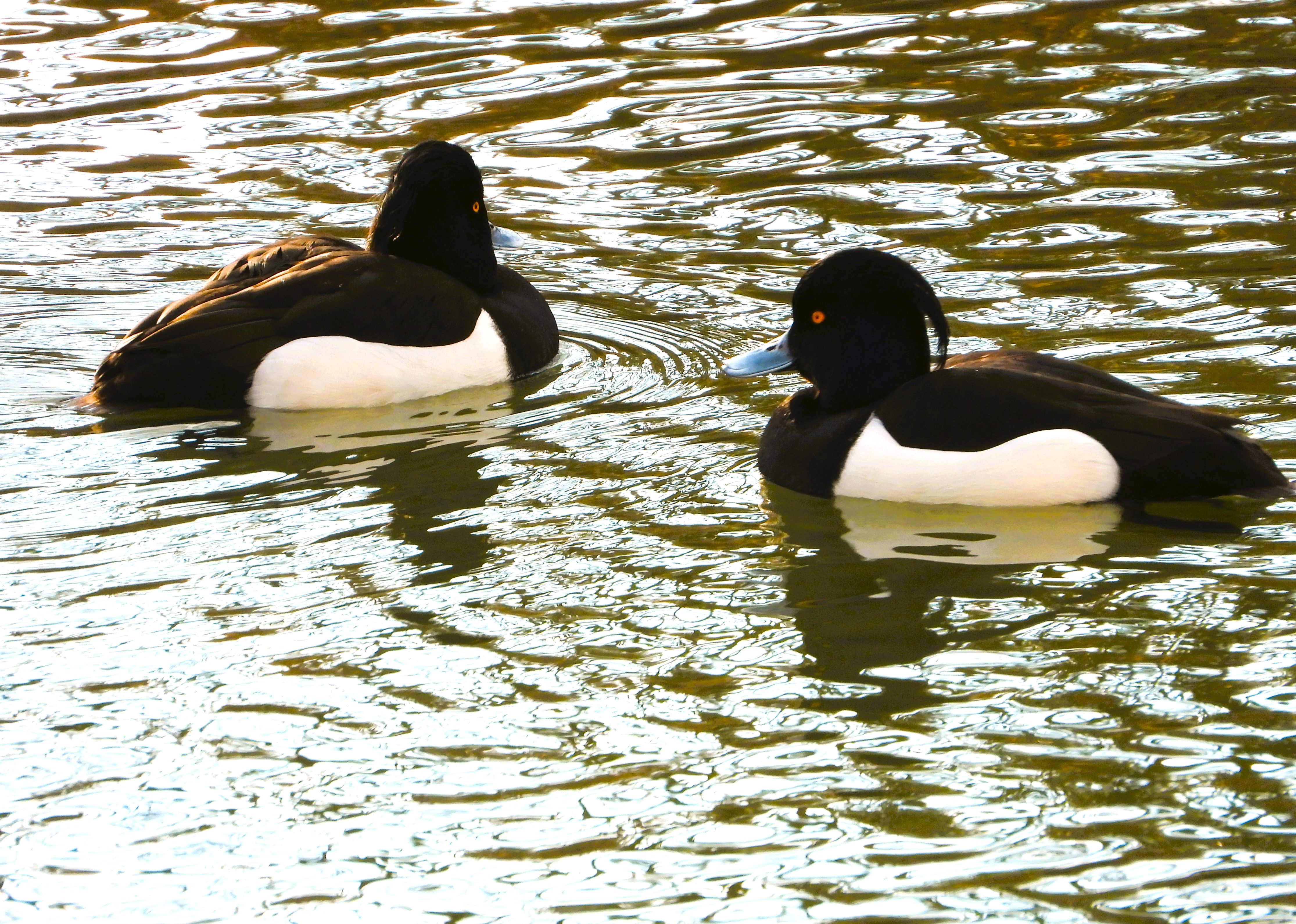 Die Reiherenten sind schon im sogenannten „Prachtkleid“: Am Hinterkopf haben die Männchen einen Federbüschel. Was das bedeutet? Nun, dass das Frühjahr bald kommt! (hoffentlich!)