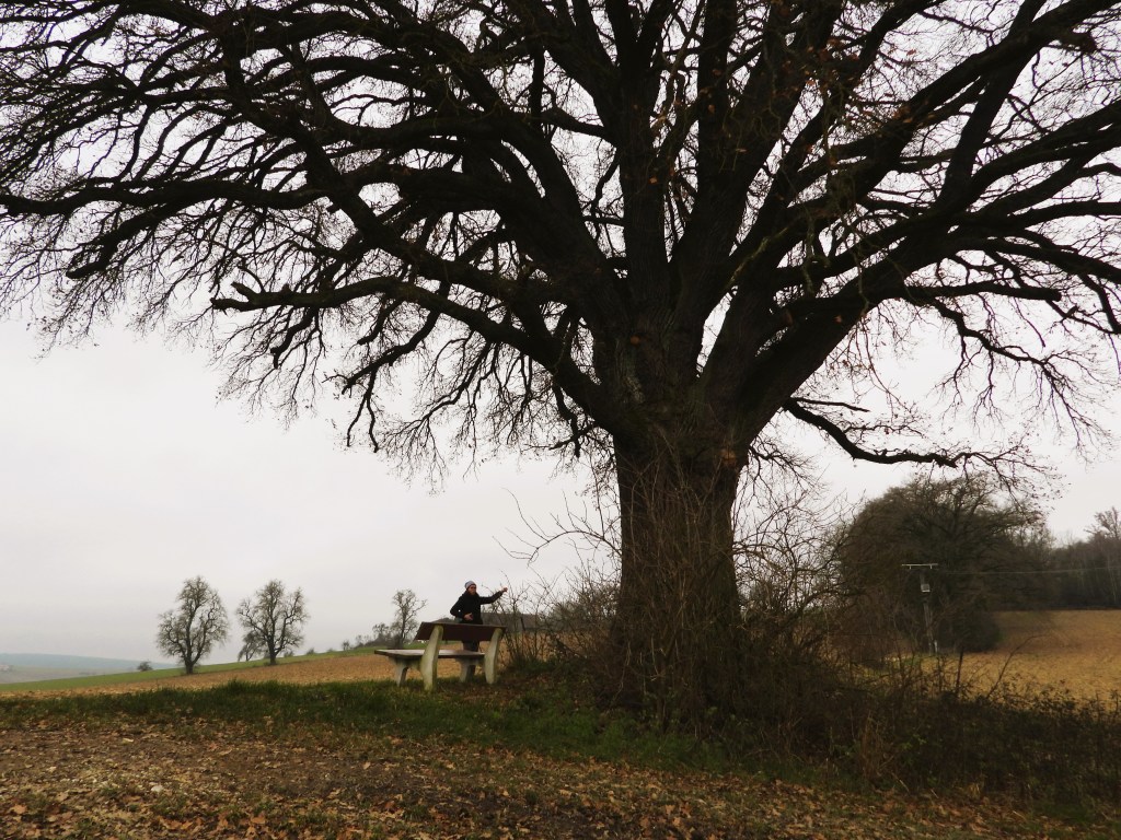 Bei eiskaltem Wind mit einer Freundin im Rottal unterwegs. Die Atmosphäre war besonders, bewölkter Himmel und doch Licht auf den Hügeln in der Ferne. Wir haben unsere Lieblingseiche besucht.