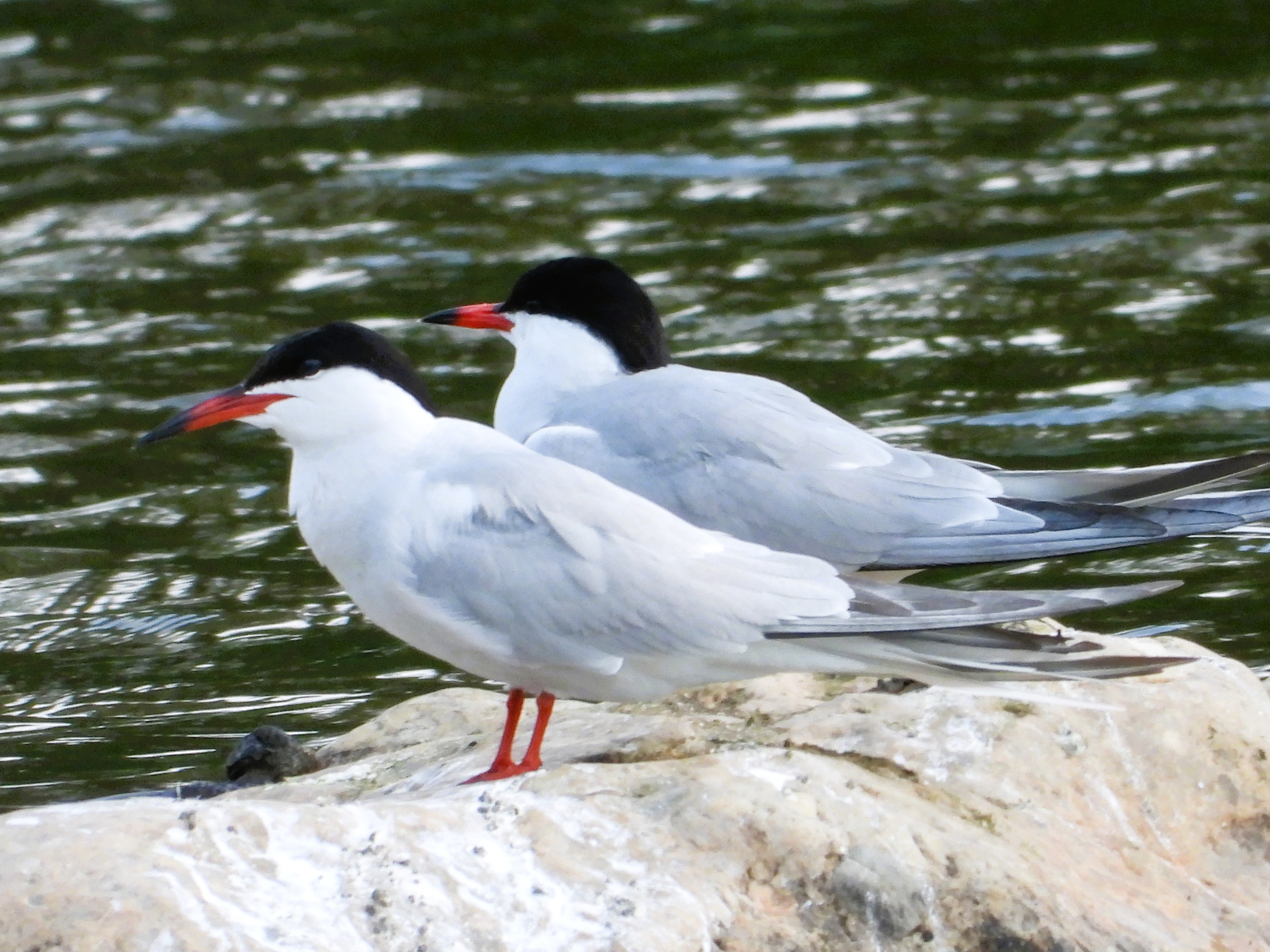 Das Flussseeschwalben-Paar ist wieder an der Rott! Ich freue mich sehr, dass sie wieder hier sind. Denn Flussseeschwalben (Sterna hirundo) sind stark gefährdet und ich finde es toll, dass sie anscheinend jedes Jahr hier brüten. Ob sie jemals Bruterfolg hatten, weiß ich nicht. Auf dem Rottauensee gibt es ein kiesbeschichtetes Brutfloß, auf dem jedes Jahr Küken flügge werden. Denn sie brauchen eigentlich ungestörte Kies- und Schotterbänke an Flüssen und Seen, um dort auf dem Boden zu nisten.
