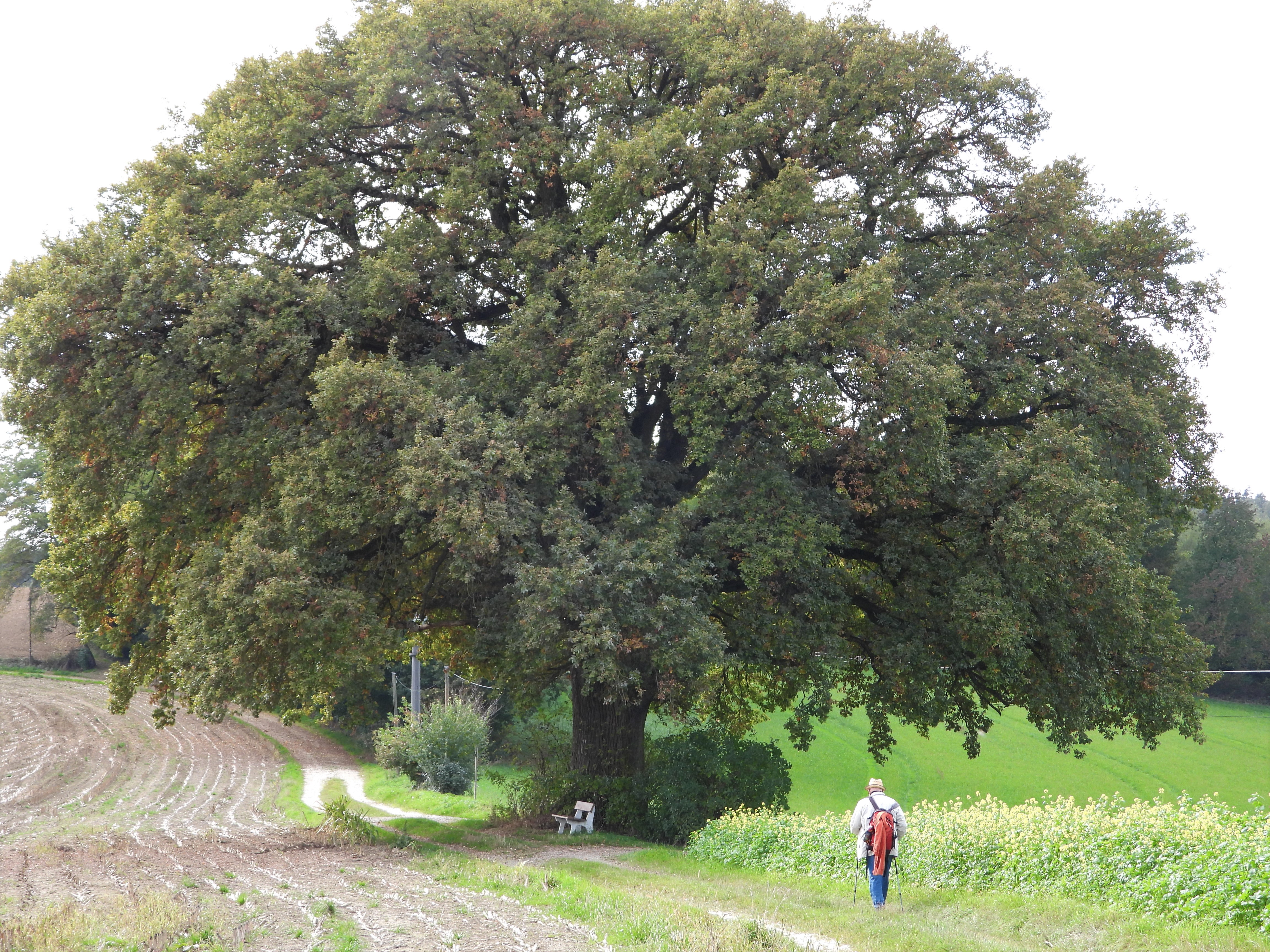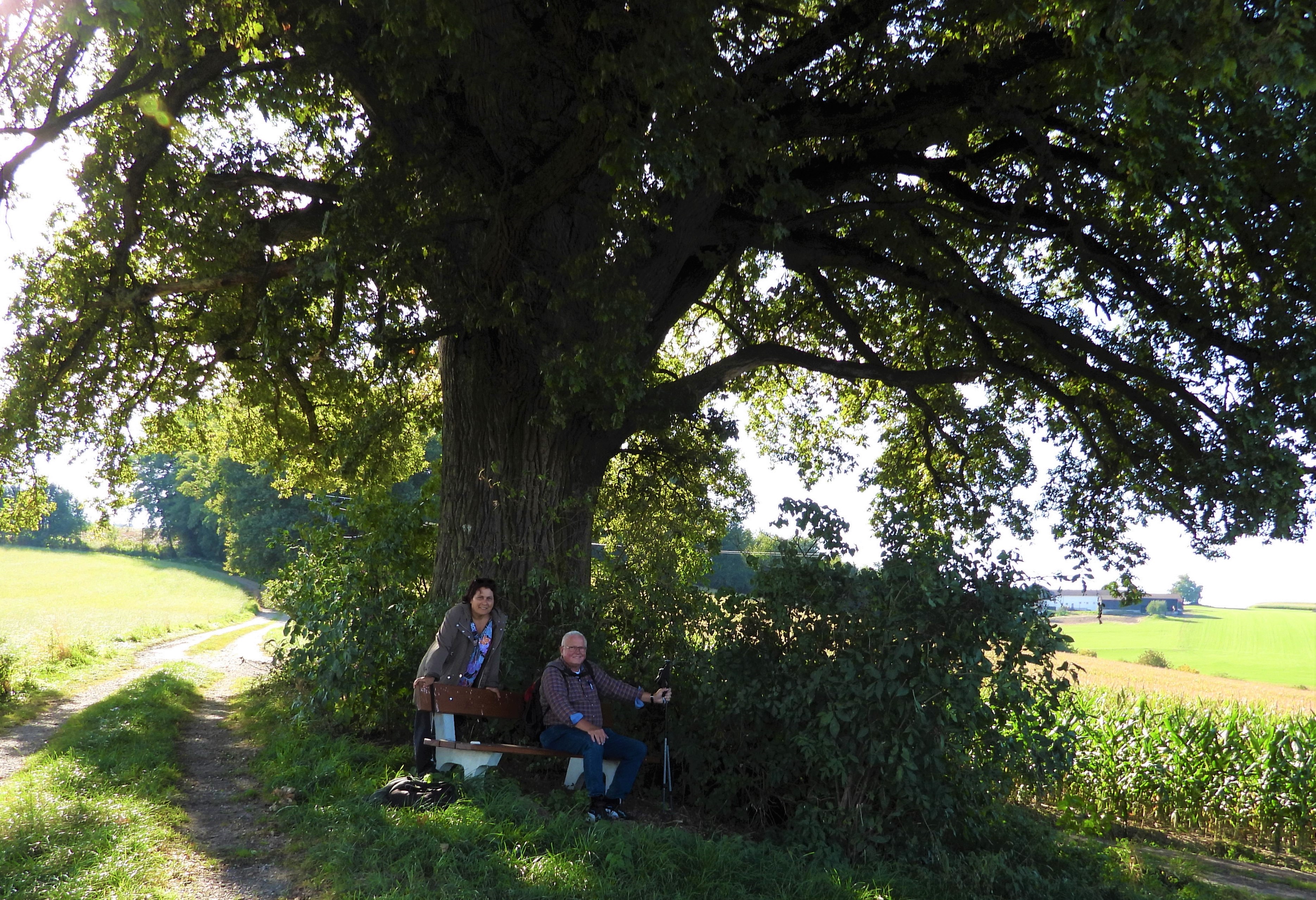 Eine romantische Wanderung bei Langwinkl im RottalSo eine schöne alte Eiche im Rottal bei Langwinkl!Blauer Himmel und viel SonneIch liebe diese alten angemalten Holzpfosten am StraßenrandRottaler Landschaften: einfach schön!
