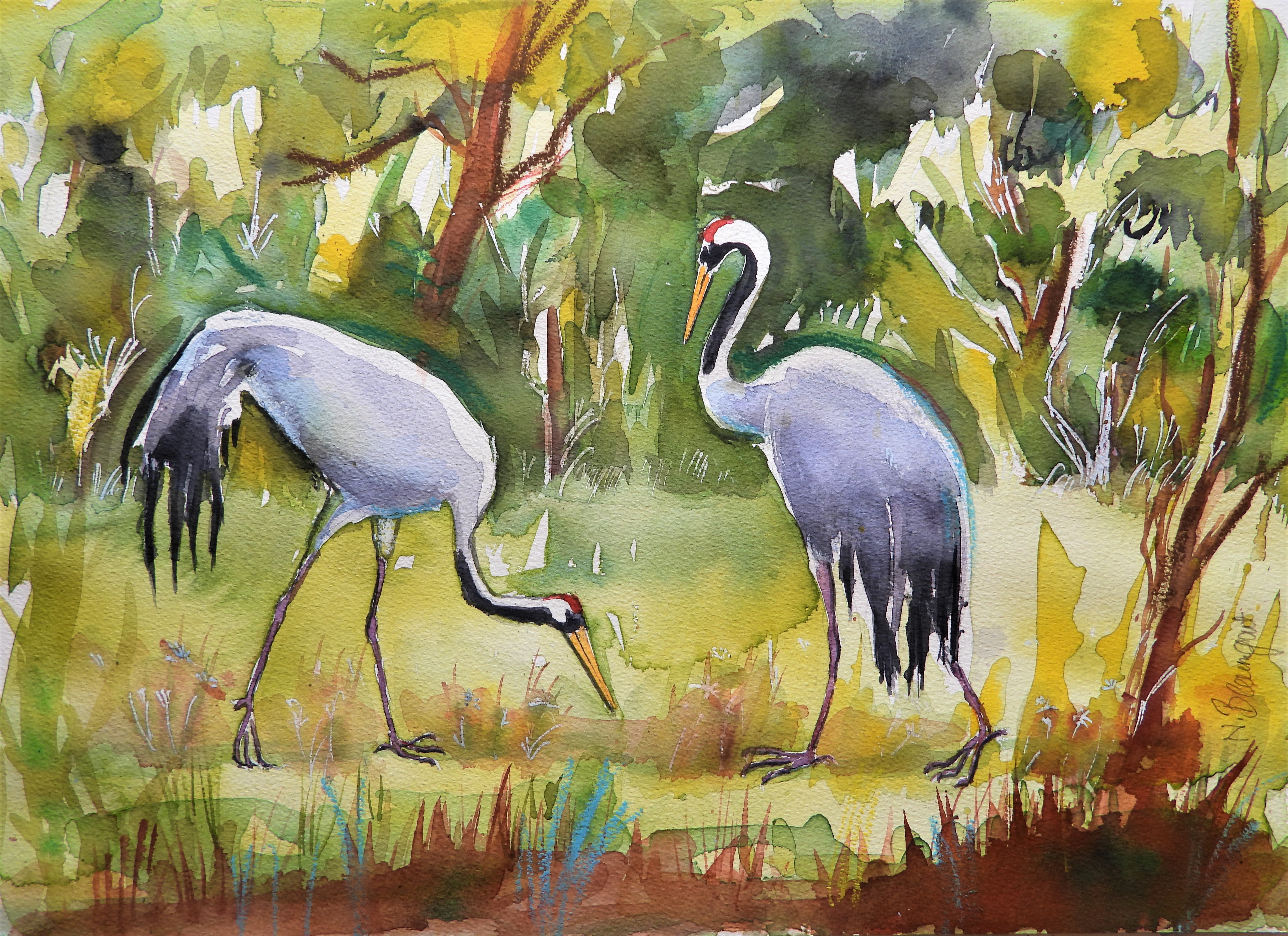 Kraniche – Tiermalerei Veröffentlicht am 19. Juni 2023 von Nadia Baumgart Kraniche – Grues cendrées – Cranes Beim Urlaub in Mecklenburg-Vorpommern haben wir viele Kraniche gesehen. Sie haben mich zu diesem Aquarell inspiriert. Teilen mit: Klicke, um auf X zu teilen (Wird in neuem Fenster geöffnet) X Klick, um auf Facebook zu teilen (Wird in neuem Fenster geöffnet) Facebook Gefällt mir Wird geladen …