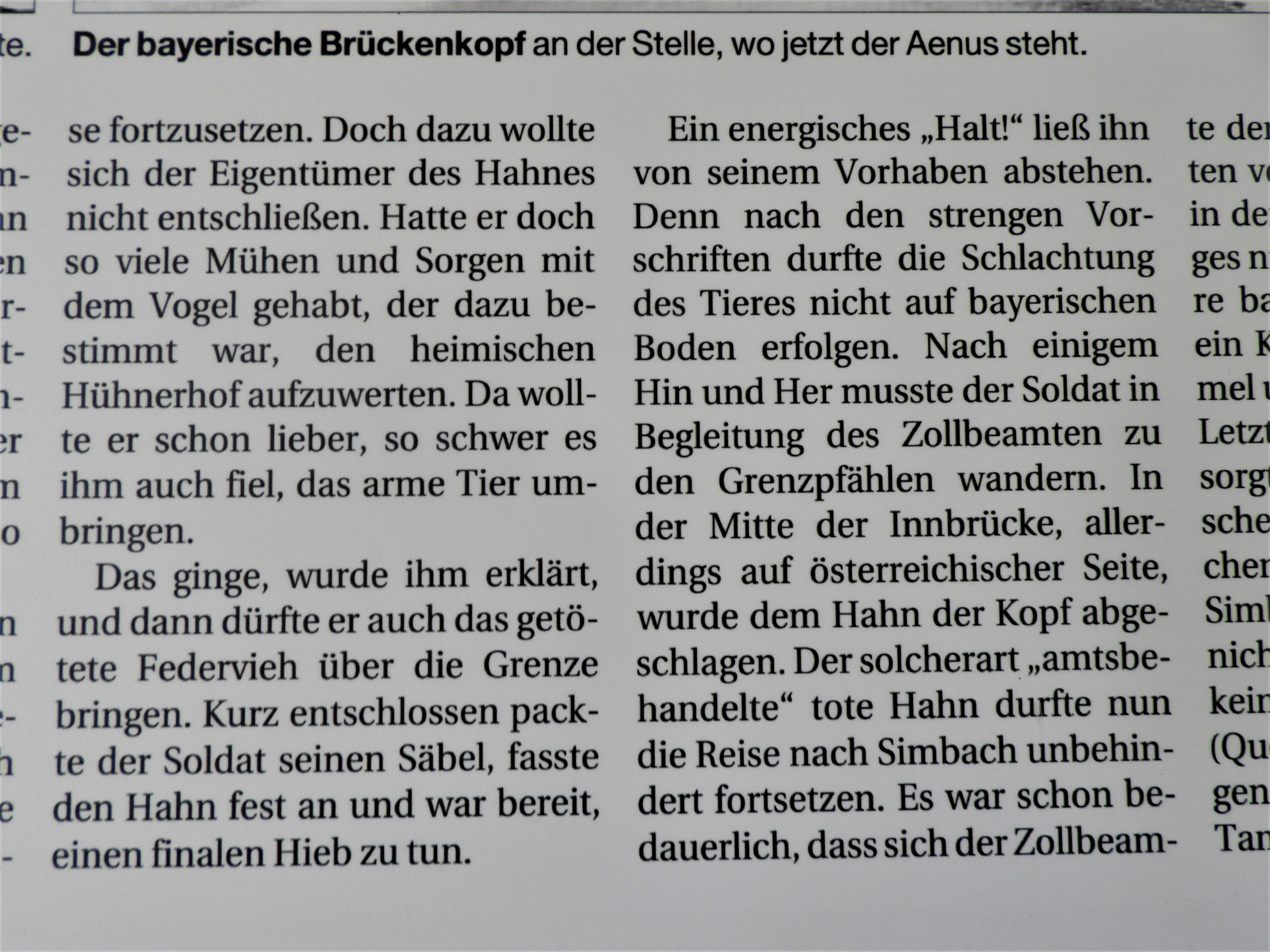 Es wurden lustige Anekdoten über den Braunauer „Bierkrieg“ erzählt, als 1908 die Innviertler Braugenossenschaft die Bierpreise erhöhen wollte und die gesamte Bevölkerung aus Protest mit Musikapelle über die Brücke nach Simbach ging, um dort das billigere Bier zu trinken. Später soll es in Simbach sogar Stammtische für „Braunauer Bierflüchtlinge“ gegeben haben.