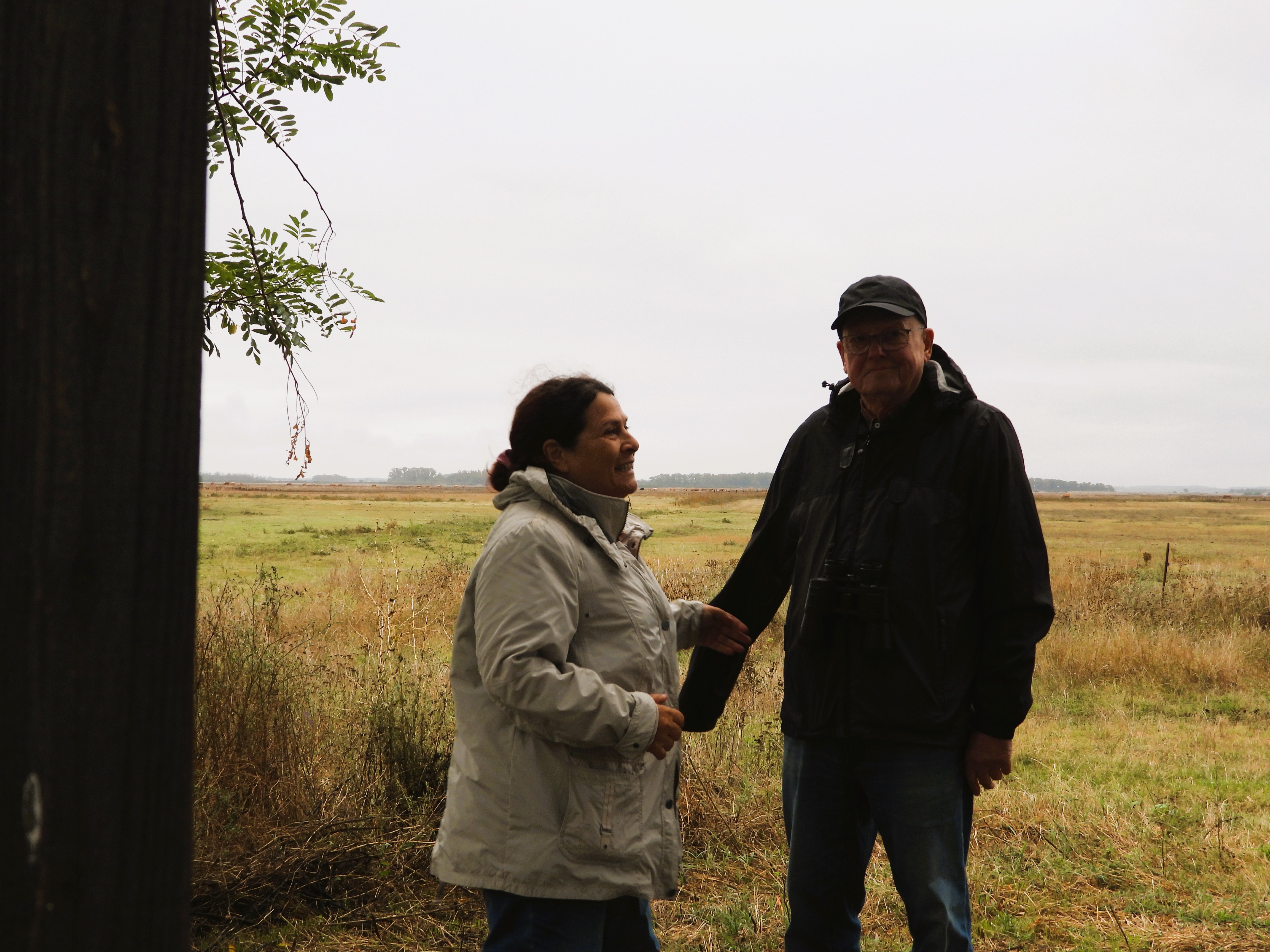 Und dann die Dimensionen: Weit, weit, unendlich streift das Auge am Horizont und doch ist das, was zählt, in den Details: Auf den kargen und salzigen Bodenflächen wachsen wirre Gräser, Ampfer, Strand-Beifuß (Artemisia maritima), Federgras und plötzlich leuchtet einem darin ein intensiv blaues Blümchen aus der Art der Rittersporne entgegen. Zaunpfähle, auf denen Rotfußfalken sitzen. Soo viele Rotfußfalken! Sie sitzen nicht nur auf den Pfählen, sondern rasen durch den Himmel, von Krähen gejagt. Ach ja, die Krähen! Davon gibt es wirklich viele, ihr Gekrächze erfüllt immer wieder die Luft. Es sind Saatkrähen. Hier und da ein einzelner Strauch, kleine Robinienwälder.