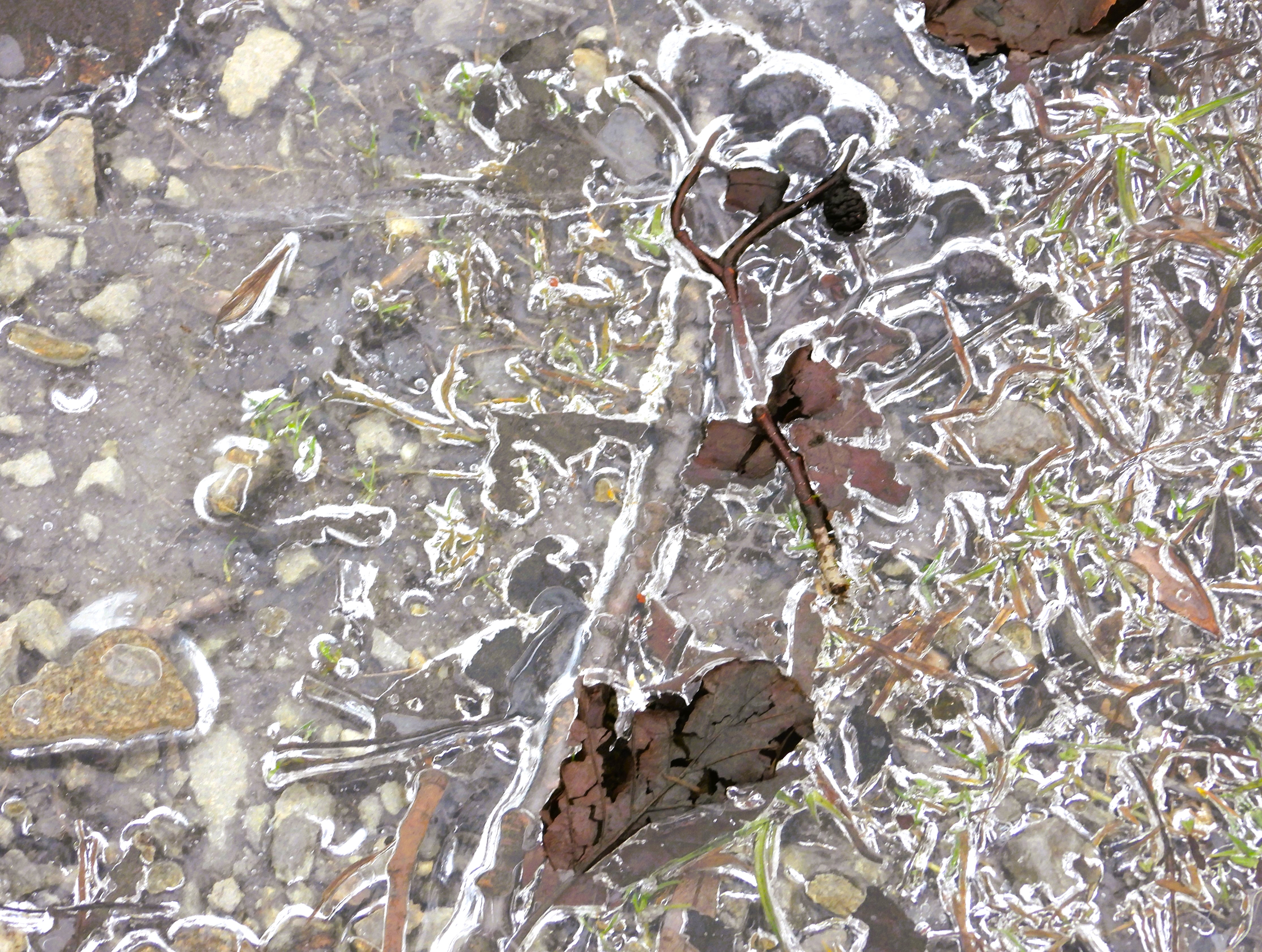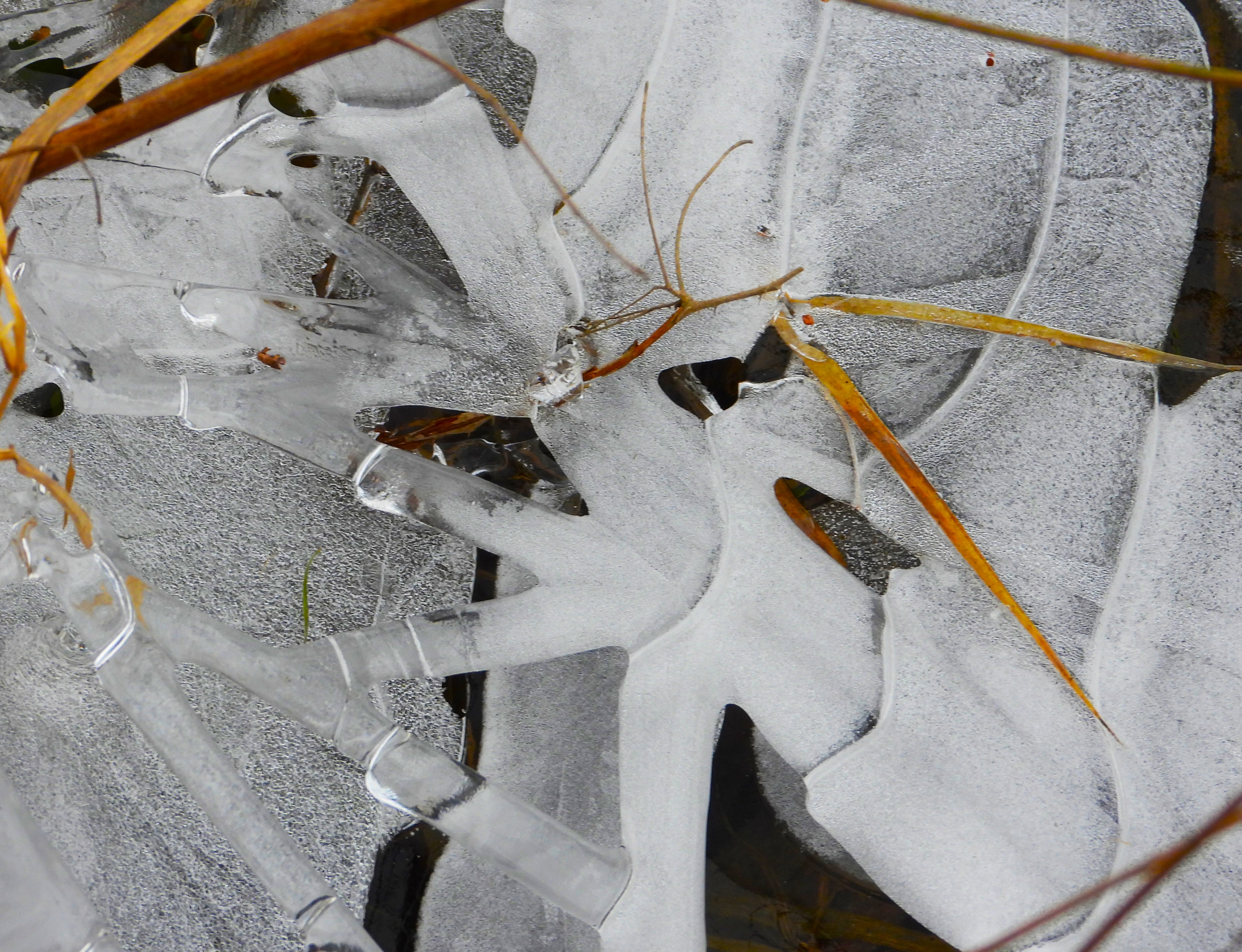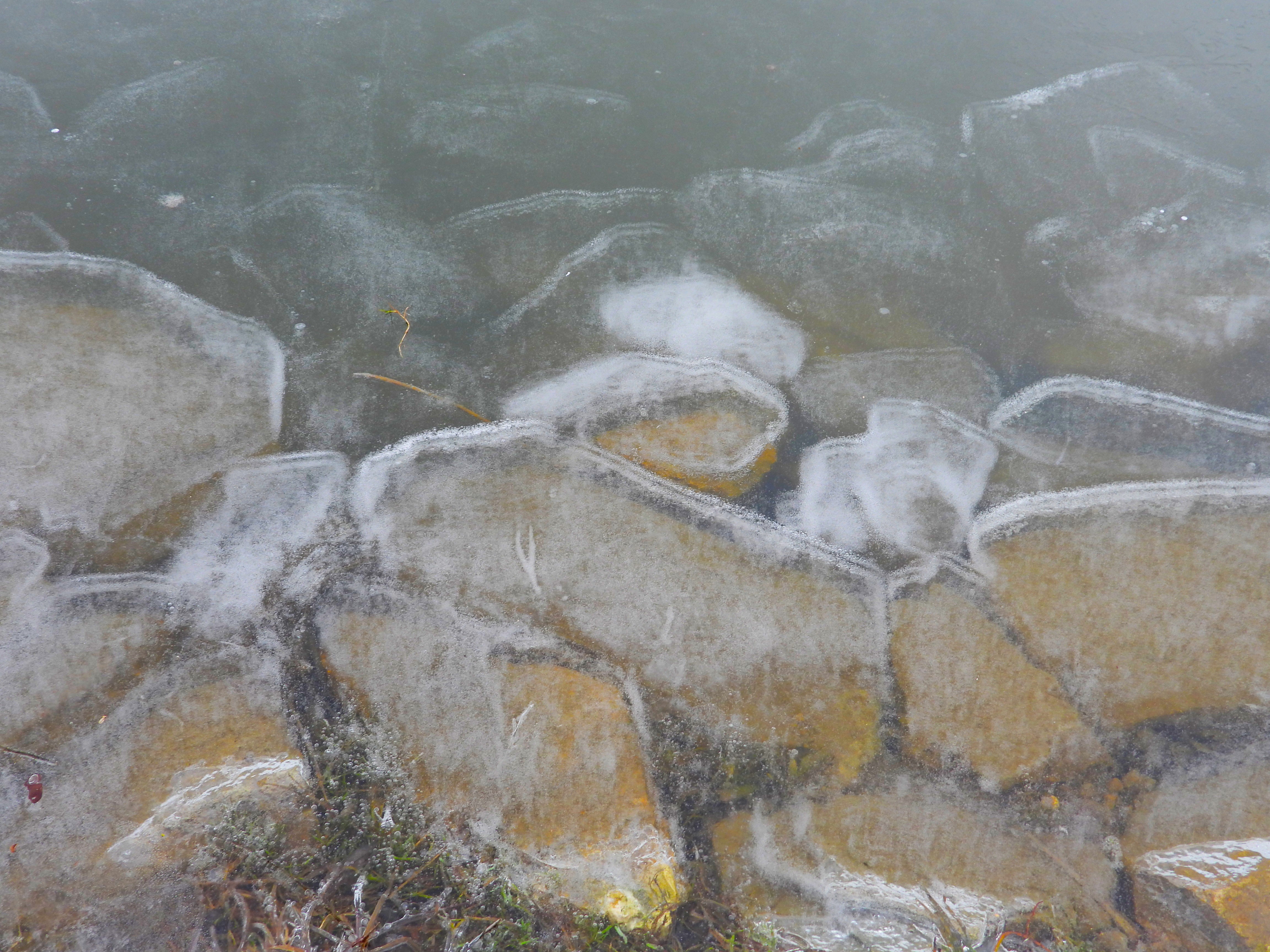 Diese wunderschönen Motive hat heute die Natur gemalt. Ich musste an Jugendstil-Dekorationen denken, die ja auch von den Formen der Natur inspiriert waren. Tausend Spitzen, in Eis gestickt, geometrische Muster von unglaublicher Präzision … Welch eine Schönheit, still und wundervoll neben uns entstanden, ganz ohne Politik…