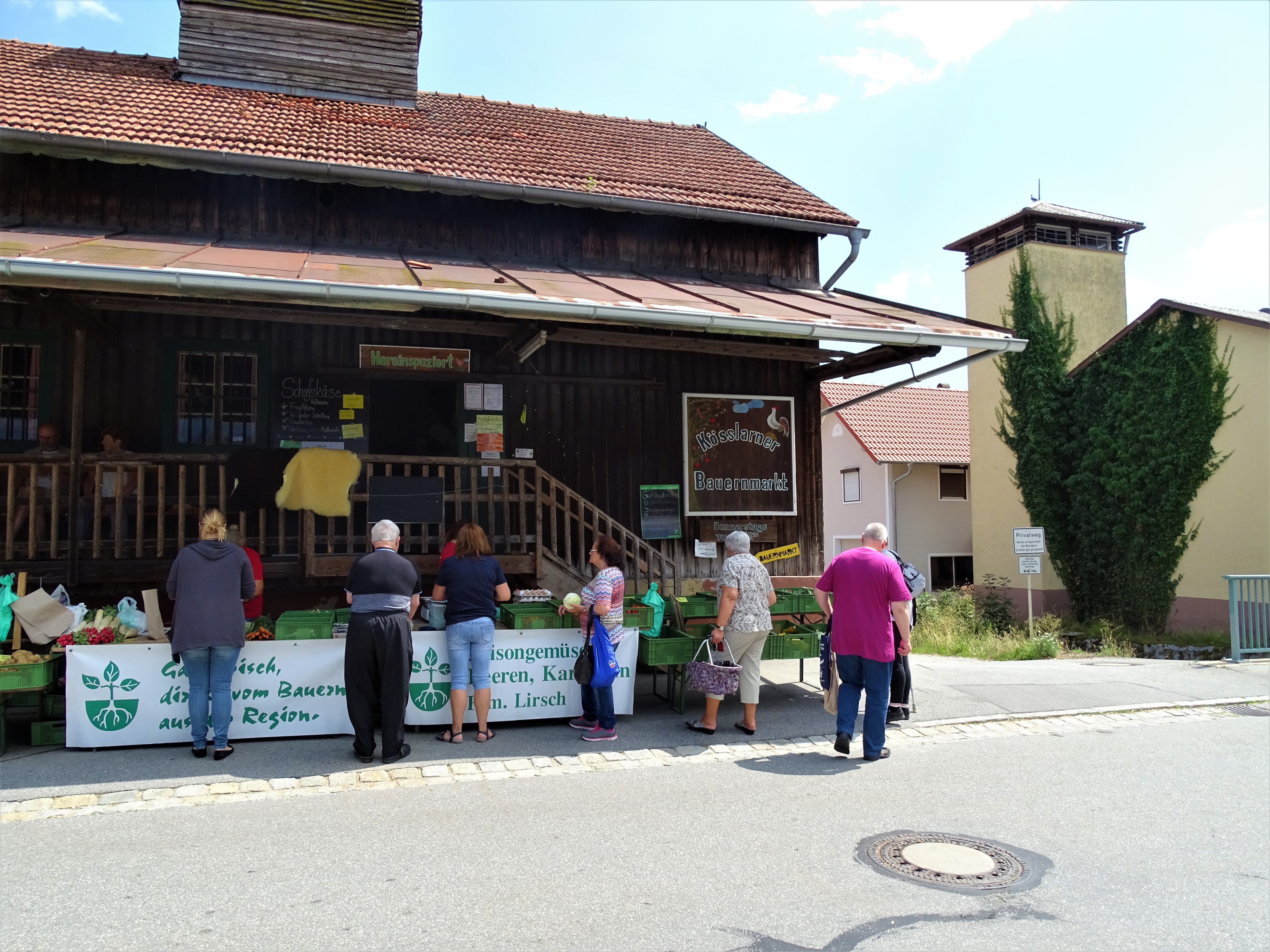 Der Bauernmarkt ist schon etwas sehr Besonderes; er ist jeden Donnerstag geöffnet und nicht nur ein Markt für Regionalprodukte, sondern auch ein Treffpunkt für die Menschen, die in der kleinen Stube zwischen den Ständen sitzen, trinken und der Musik lauschen. Denn es wird da auch musiziert! Der Käsestand ist mein Favorit: einen wahrhaft göttlichen Schafskäse, den die Schäferin Isolde Moser in ihrer kleinen Hofkäserei bei Asbach in Rucking produziert. Über diesen Hof hatte ich bereits berichtet: