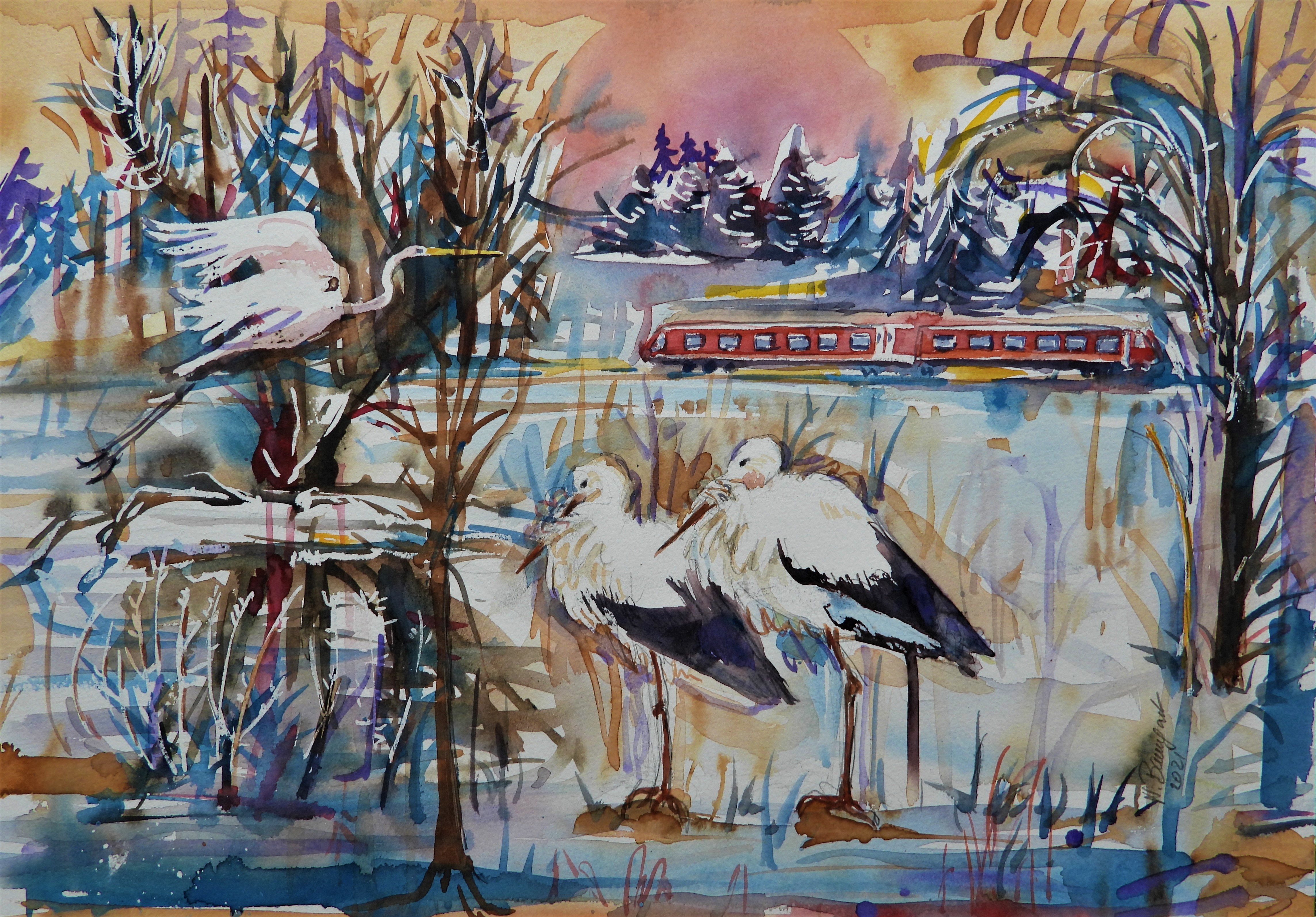 #rottalinn #aquarelle #malerei #störche #winter2021