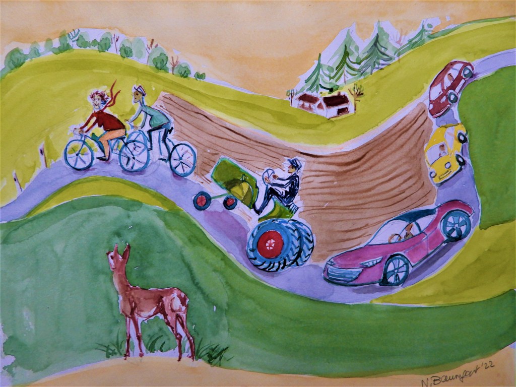 Inzwischen hat sich die Situation verändert, aber immer wieder kommt es doch zu solchen Bildern, die mich schmunzeln lassen…Viele klagen über den Mangel an Radwegen in ländlichen Gebieten, aber ich habe Verständnis dafür, dass es sie nicht überall geben kann. Wer sie überall haben will, muss alle Landstraßen erweitern, das heißt auch mehr Asphalt…Alles hat so seine Pro- und Contra-Seiten…Dort wo wirklich viel geradelt wird, machen Radwege wohl einen Sinn…