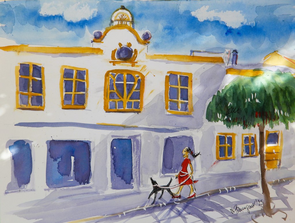 Meine Lieblingshäuser in Bad Birnbach – Letztens habe ich die alte Glaserei Betz erwähnt, nun habe ich das wunderschöne Holzhaus in der Hofmark 17 gemalt. Es handelt sich um den Wohnteil eines ehemaligen Bauernhofs sowie um ein angrenzendes Ziegelgebäude. Jetzt im Herbst hat sich der rankende Wein an den Fassaden romantisch rot gefärbt.