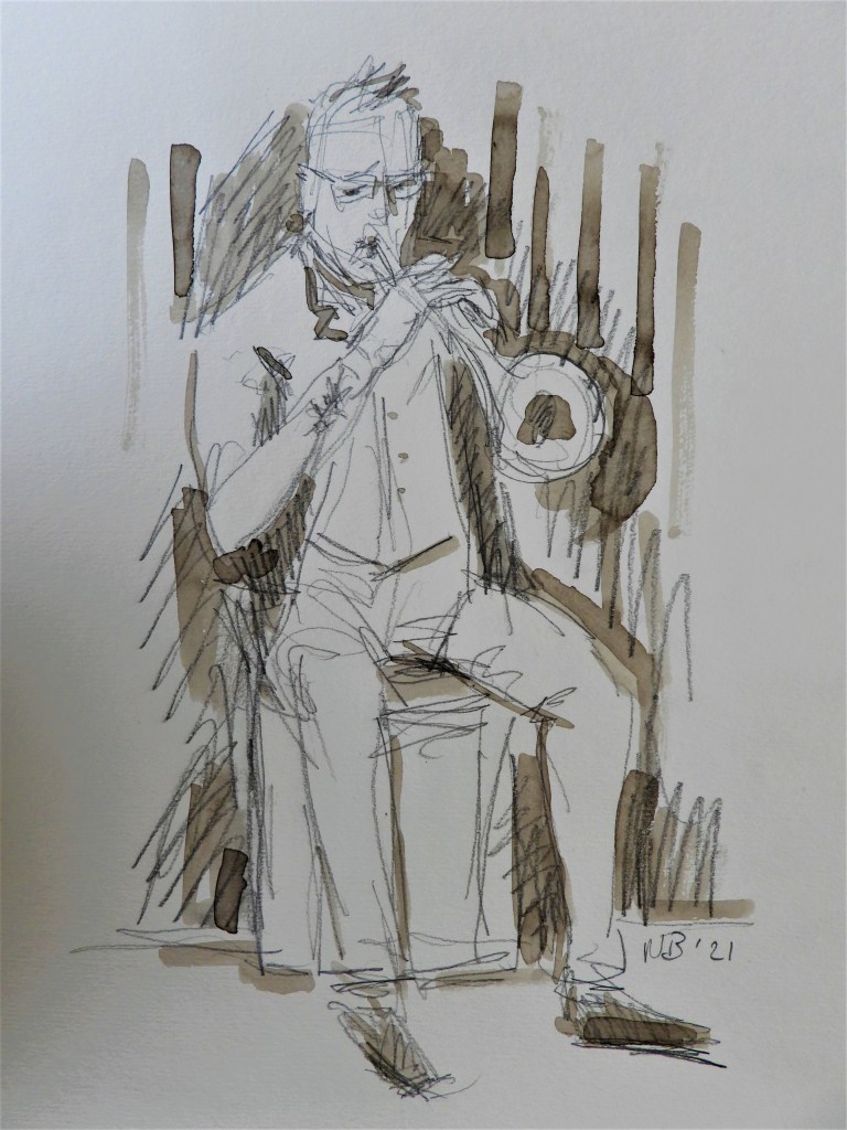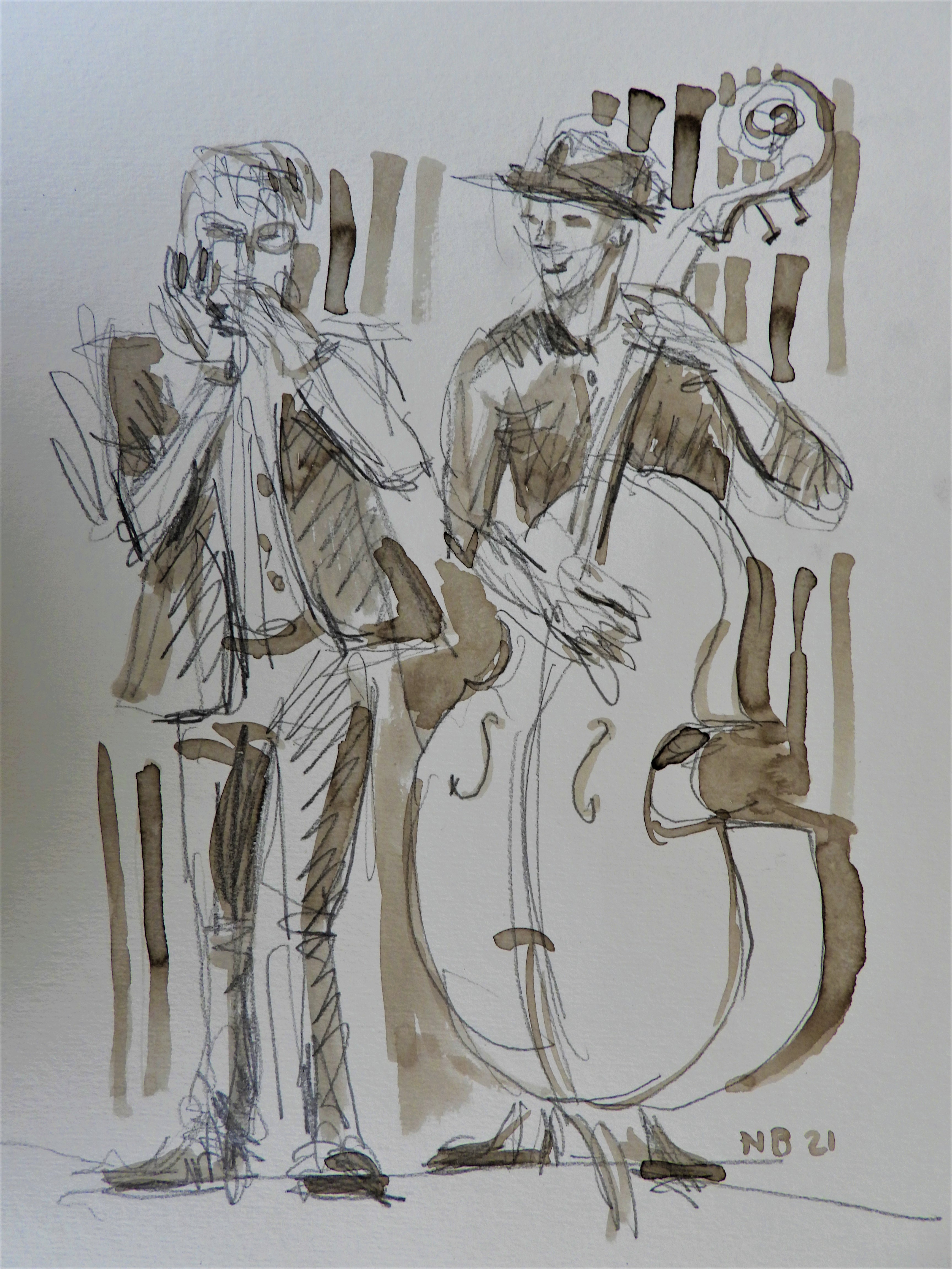 Sketche im Konzertsaal – Bairischer KammersoundTuschezeichnung Sepia