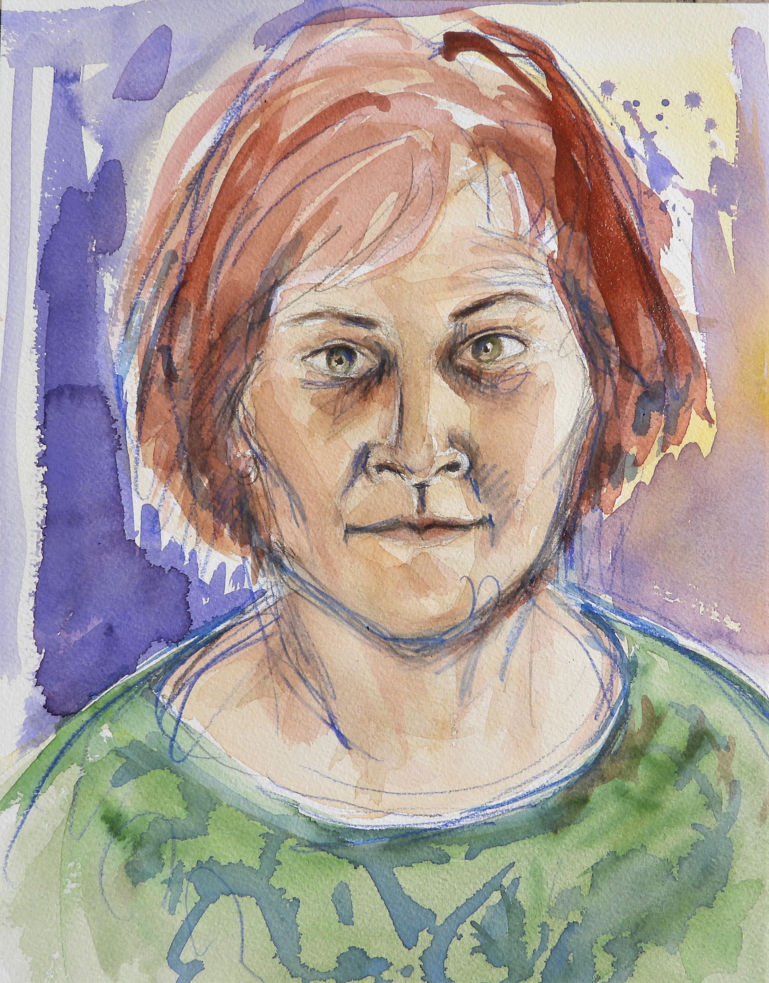 Vor Ort habe ich gezeichnet, zu Hause dann koloriert. Und ein Portrait habe ich eben auch beendet. Hier ist es.