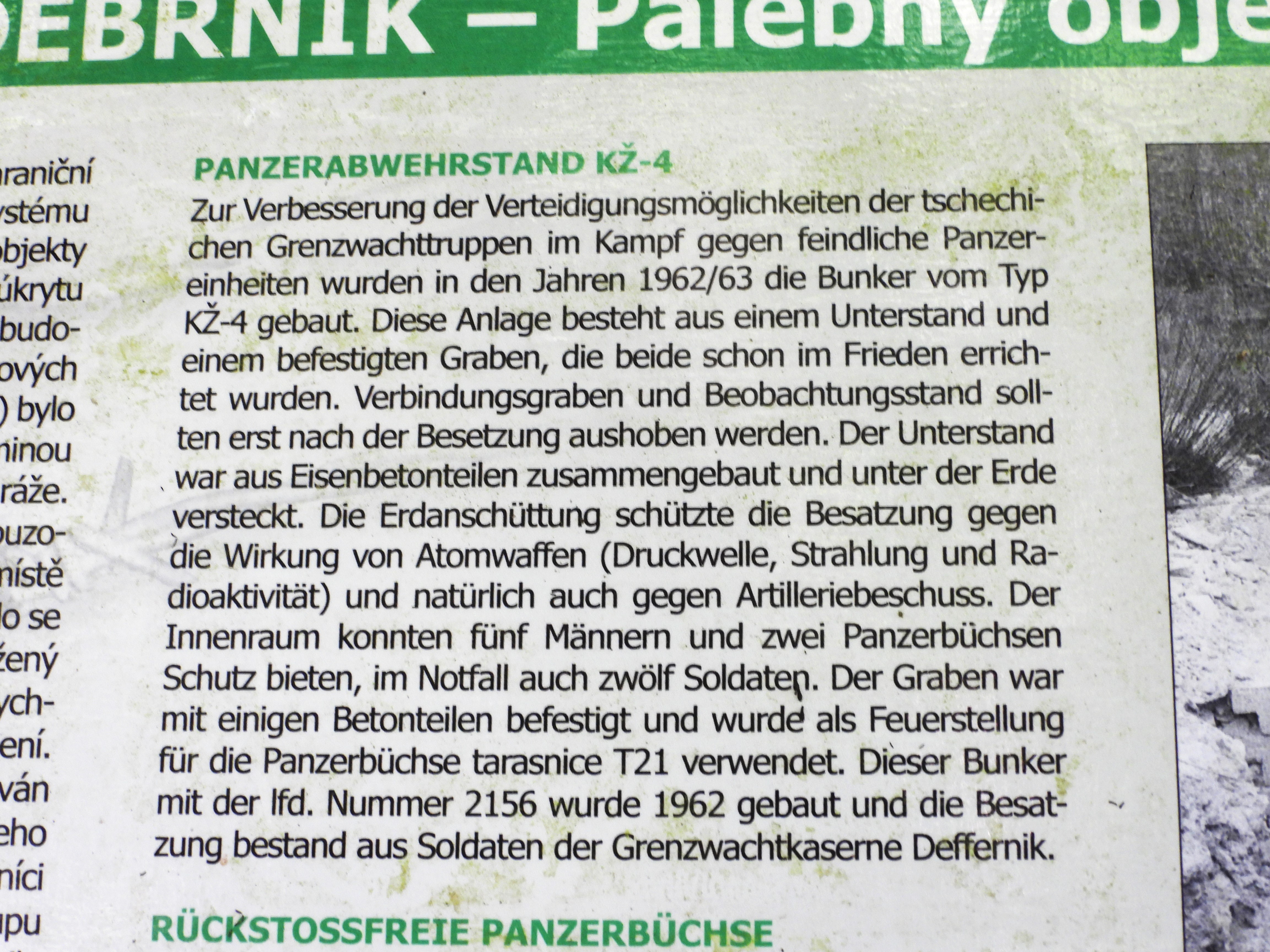 Tschechische Grenzsoldaten im GrabenEin noch sichtbarer SchießschachtEiner der Panzerabwehrstände im Grenzgebiet Tschechien-Deutschland 1962