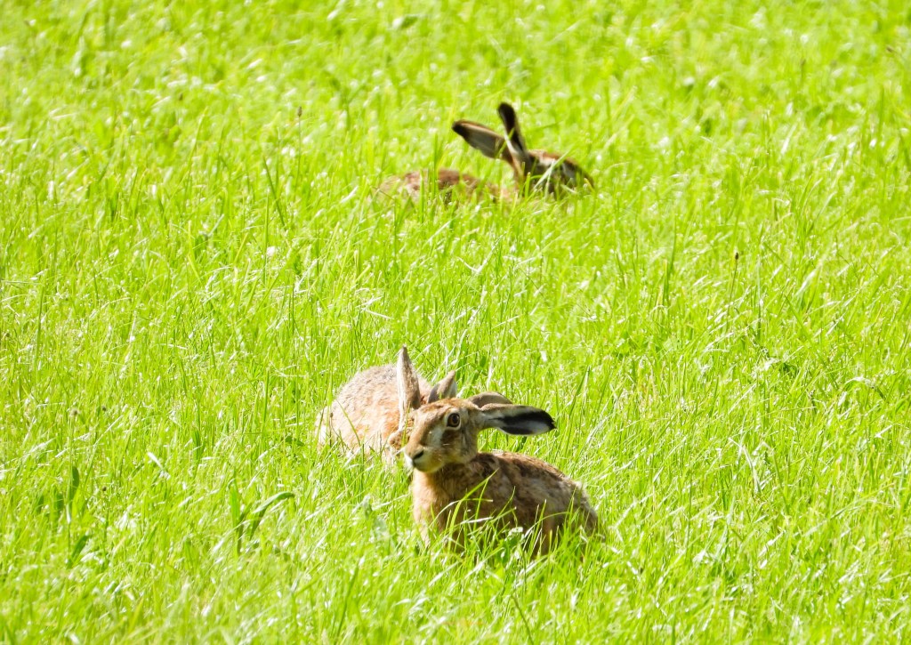 Ui wie schön die sind, die Feldhasen! In diesem Frühjahr sehen wir kaum Schmetterlinge, dafür recht viele Hasen…Sind sie nicht wunderschön?
