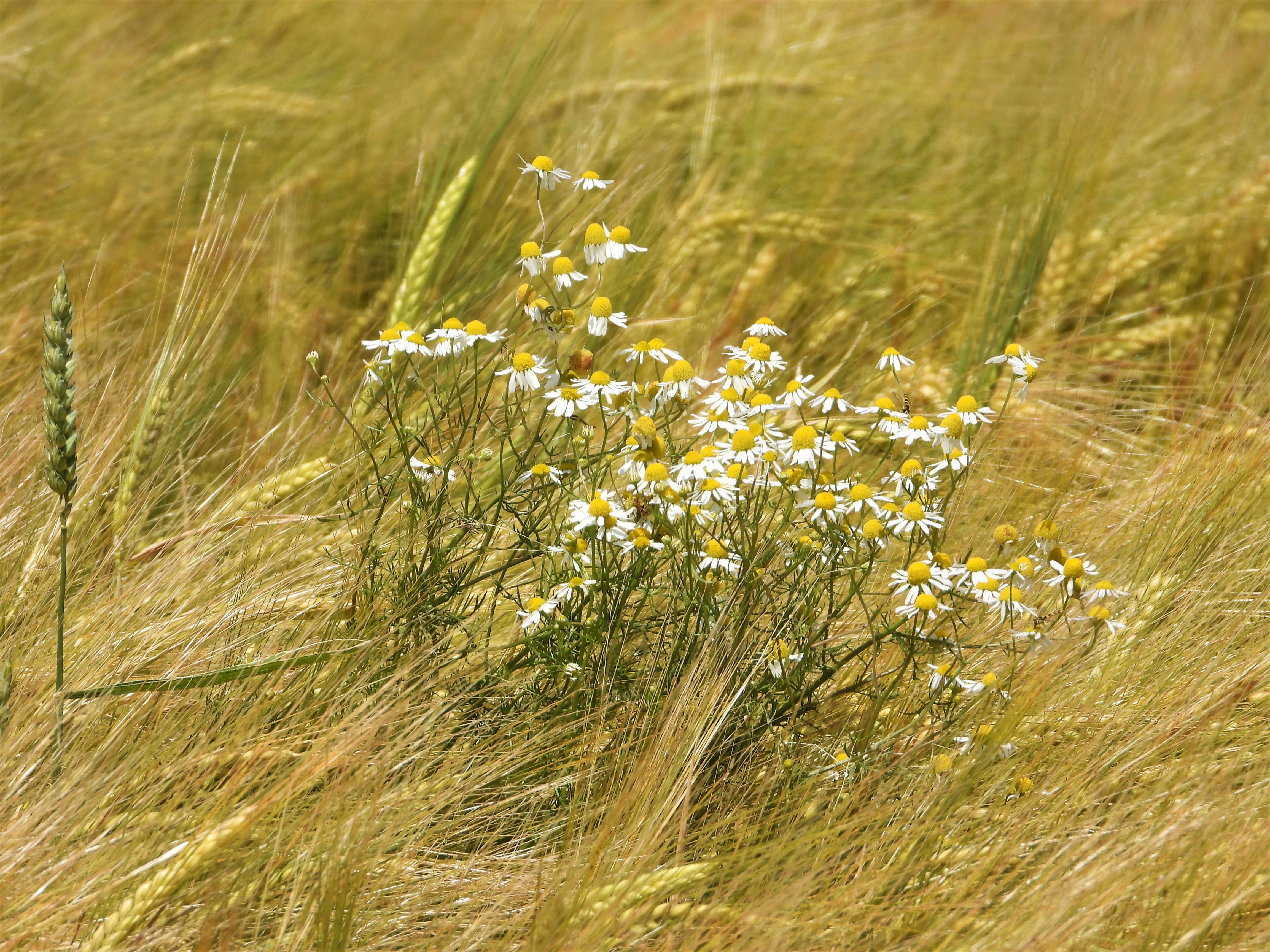 Welch eine Schönheit! Ein Gerstenfeld voller Kornblumen! Bestimmt hat der Landwirt sie gesät, denn die meisten Ackerwildkräuter werden ja mit Unkrautvernichtungsmittel bekämpft und die stärkere Düngung lässt sie auch verschwinden.