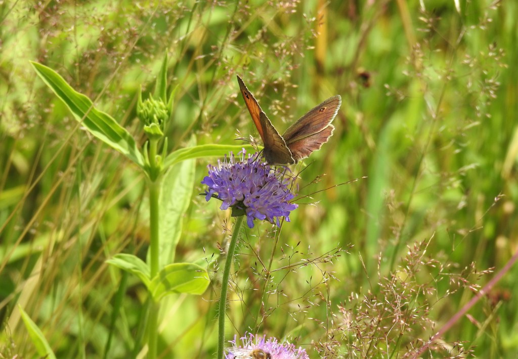 Dass es wohl kaum schönere und artenreichere Blühwiesen in der größeren Umgebung gibt als im Šumava Nationalpark. Richtig große Ansammlungen von Arnika ziehen Schmetterlinge an. Auf dem ebenfalls gelben Jakobs-Greiskraut tummeln sich manchmal bis zu zehn Mohrenfalter. Auch Kaisermantel und Perlmutterfalter sind uns öfters über den Weg geschwirrt.