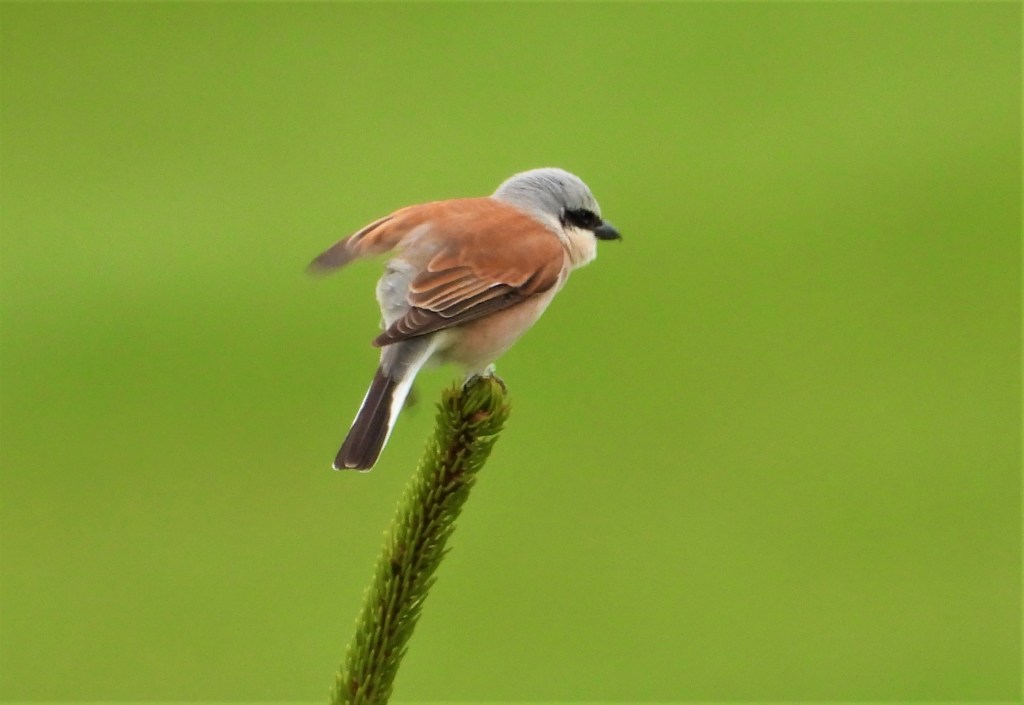 Ein Spaziergang im Paradies! Den haben wir heute mit Birgit gemacht und dabei wilde Natur entdecken können. Das Highlight waren die vielen balzenden Neuntöter (Lanius collurio). Die Männchen mit ihrer schmalen, schwarzen Gesichtsmaske saßen auf den Tannenspitzen und ließen ihren Balzgesang hören. Erst jetzt kommen sie aus ihrem Winterquartier in Afrika zurück. Wir haben bestimmt ein Dutzend gesehen! Am Ende des Videos (unten) hört man den Balzgesang.