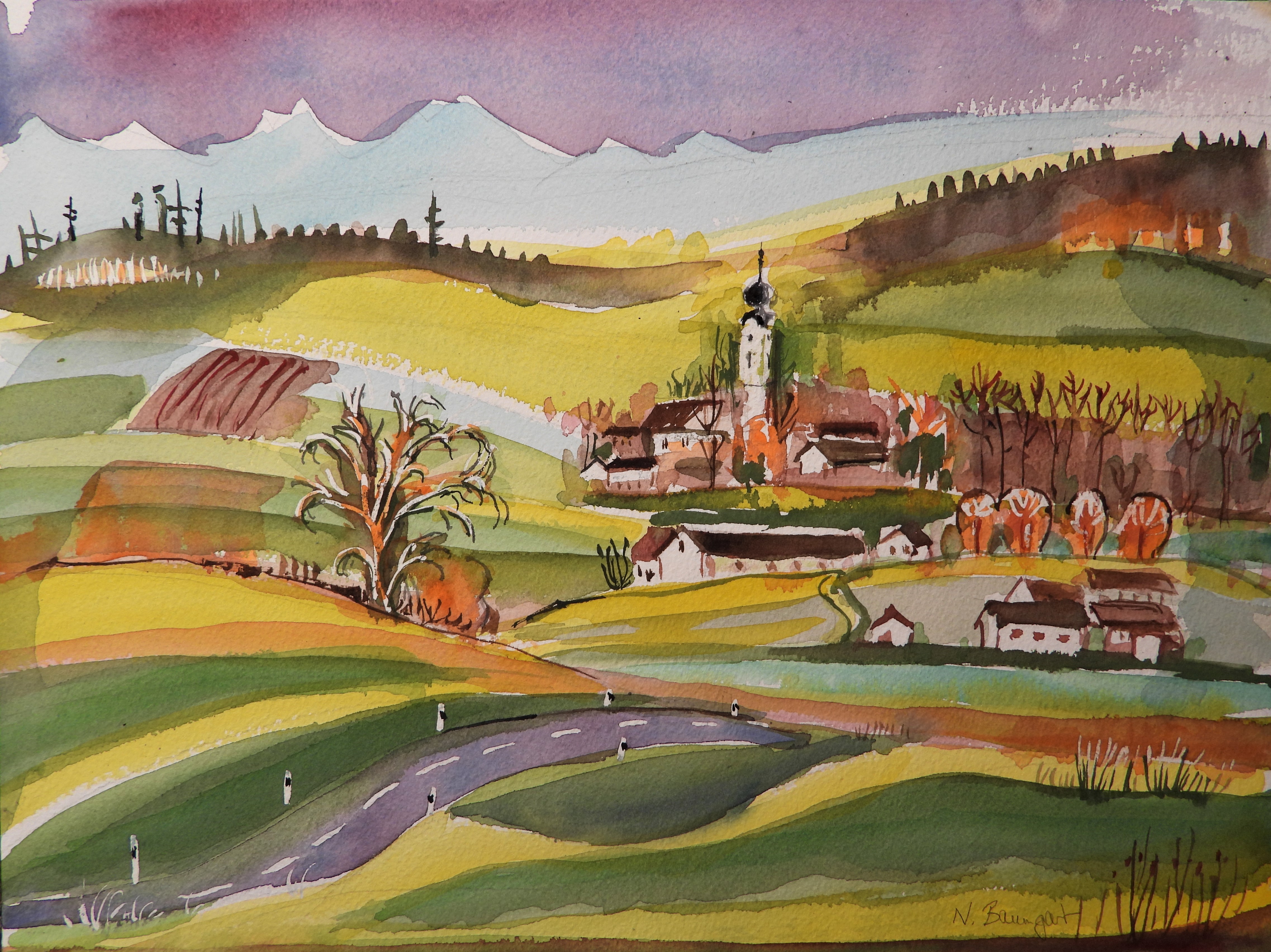 Rottaler November-Landschaft. Gestern erschien der Wolkenhimmel beinahe dramatisch. Das musste ich malen.