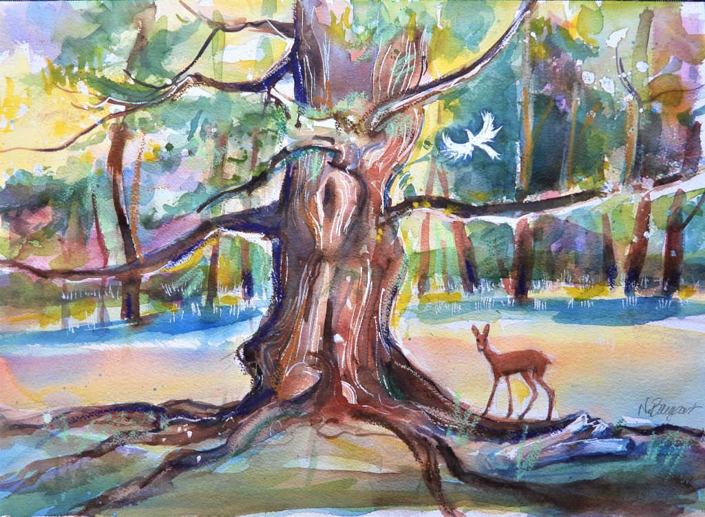 FR: Visite à notre chêne préféré près de Langwinkl. Il est aussi grand qu’une forêt entière, et le vent s’engouffrait bruyamment dans ses jeunes feuilles. Nous le visitons en toutes saisons.