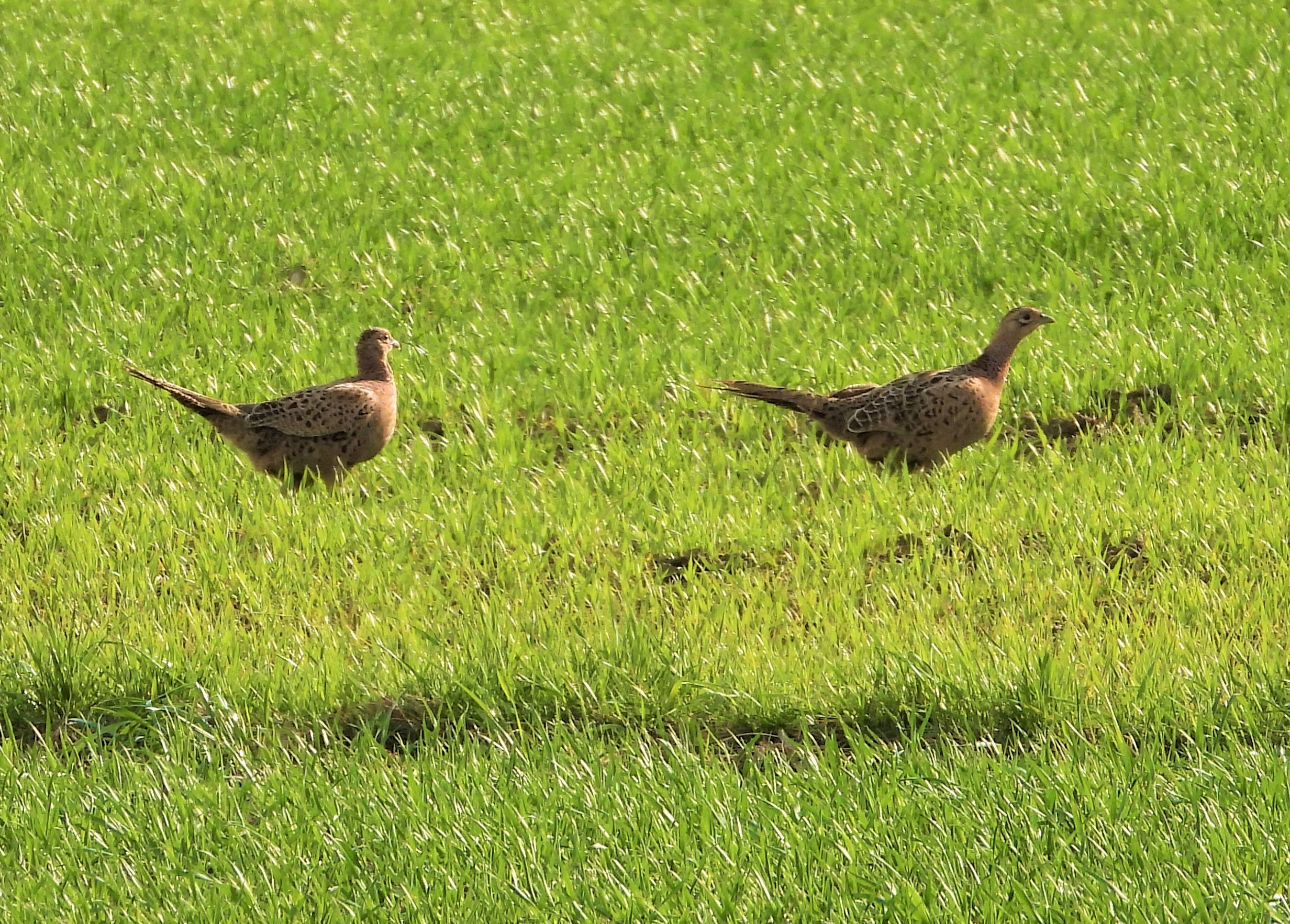 Endlich habe ich mal einen Fasan mit seinen liebsten Damen erwischt! War das schön!!! Hennen sind deutlich kleiner als die Hähne und durch ihr schlichtes, bräunlich- graues Federkleid besser gegenüber Feinden getarnt. Unten im Film sind sie (zusammen mit dem Weißstorch) auch zu sehen.