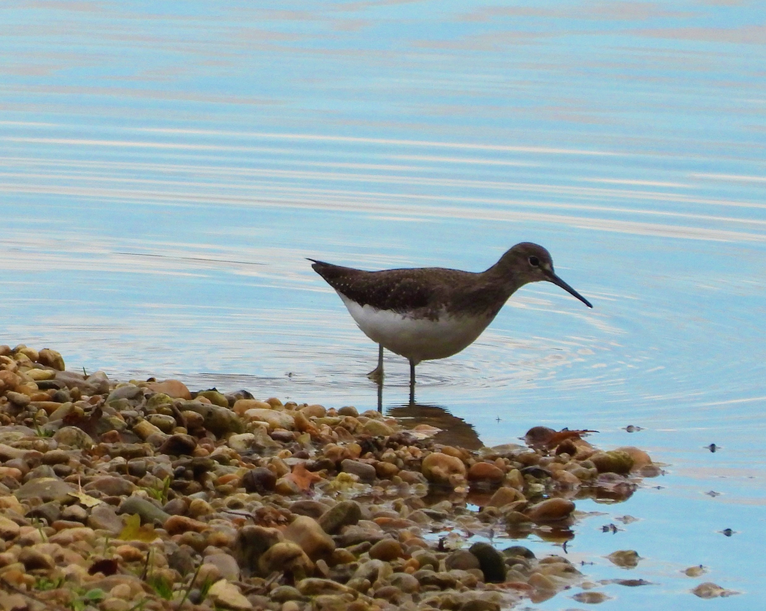 FR: Nous avons vu beaucoup d oiseaux le long de notre rivière aujoud’hui. Le chevalier cul-blanc s est montré parce que c était calme. Il n aime pas du tout etre dérangé par des chiens…