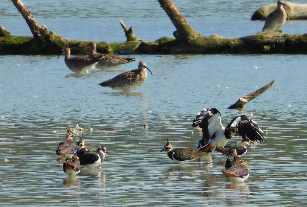 Große Brachvögel N(umenius arquata) mit Kiebitzen (Vanellus vanellus)