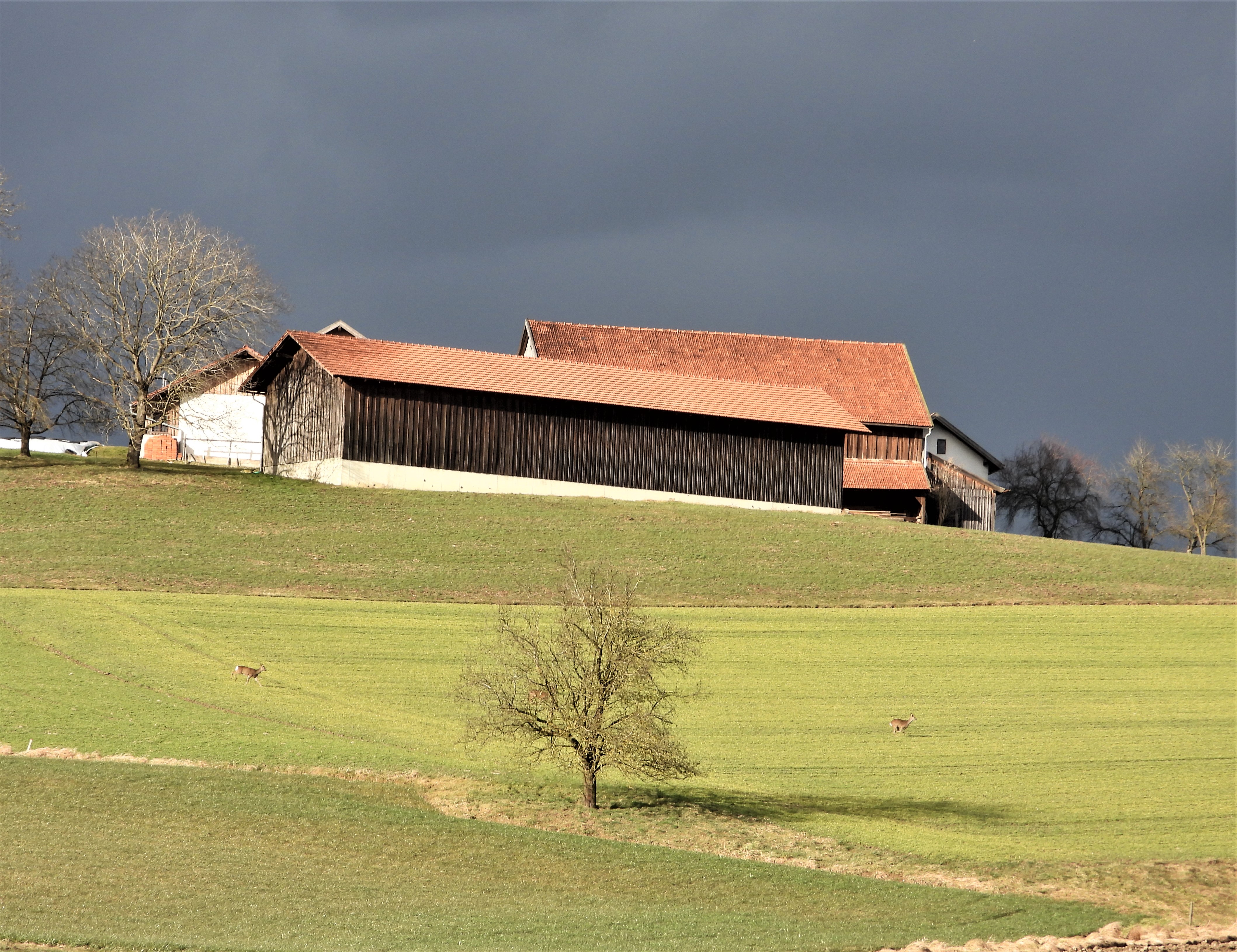 Heute wehte der Sturm auch durch das Rottal. Dabei huschte immer wieder ein surreales Licht über die Landschaften. Als dann auch noch Rehe über die Äcker liefen, musste ich die Kamera zücken.
