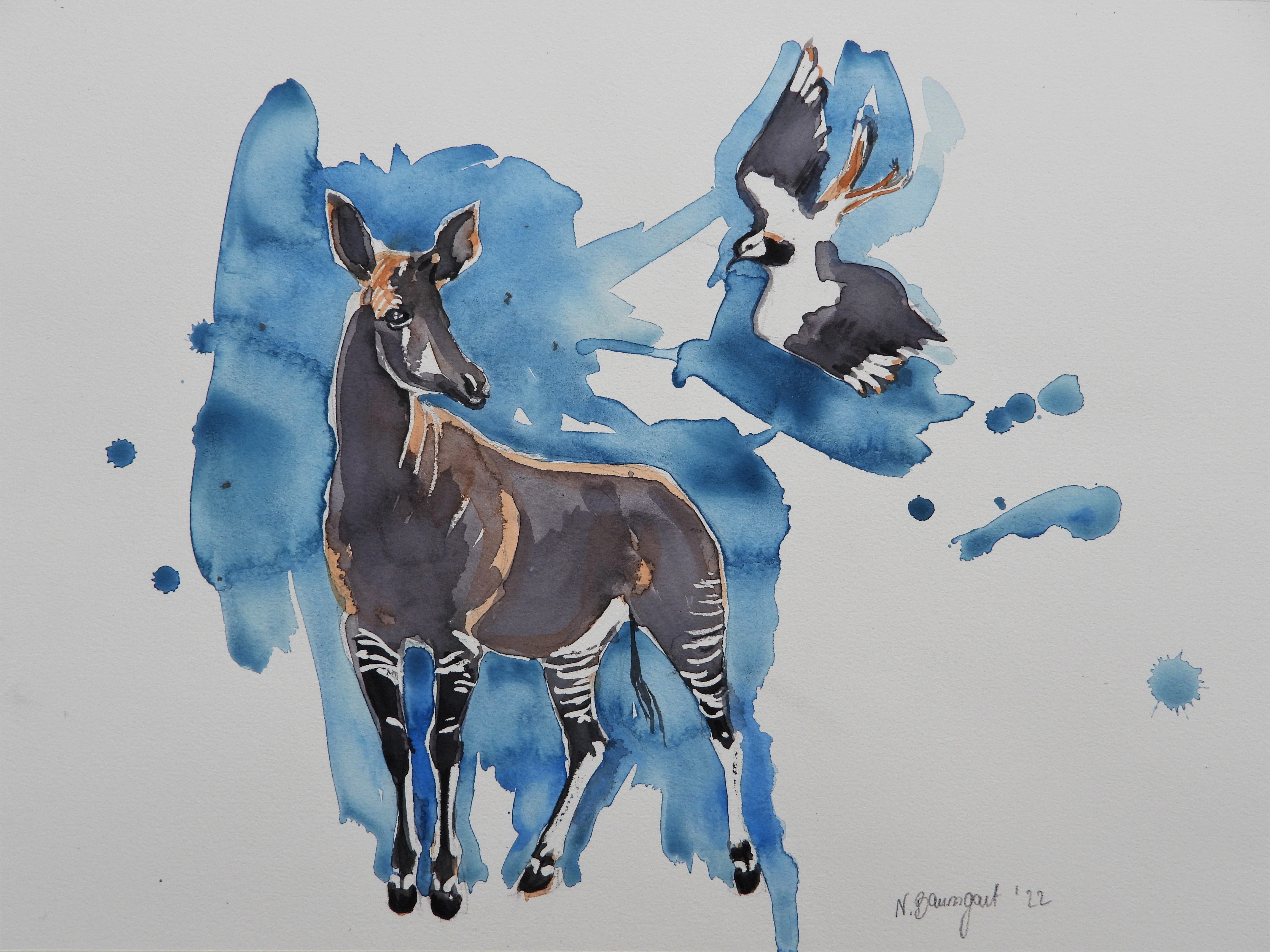 Ich hatte mal wieder Lust auf „Unsinniges“ und dabei kam eben das heraus: Ein Luchs im Schnee, auf dem ein Großer Brachvogel reitet. Im „richtigen Leben“ würden die beiden sich wohl kaum begegnen, da ihre Lebensräume sehr unterschiedlich sind: Wald für den Luchs und feuchte Wiesen oder Moore für den Brachvogel. Aber in der Fantasie ist ja beinahe alles möglich.