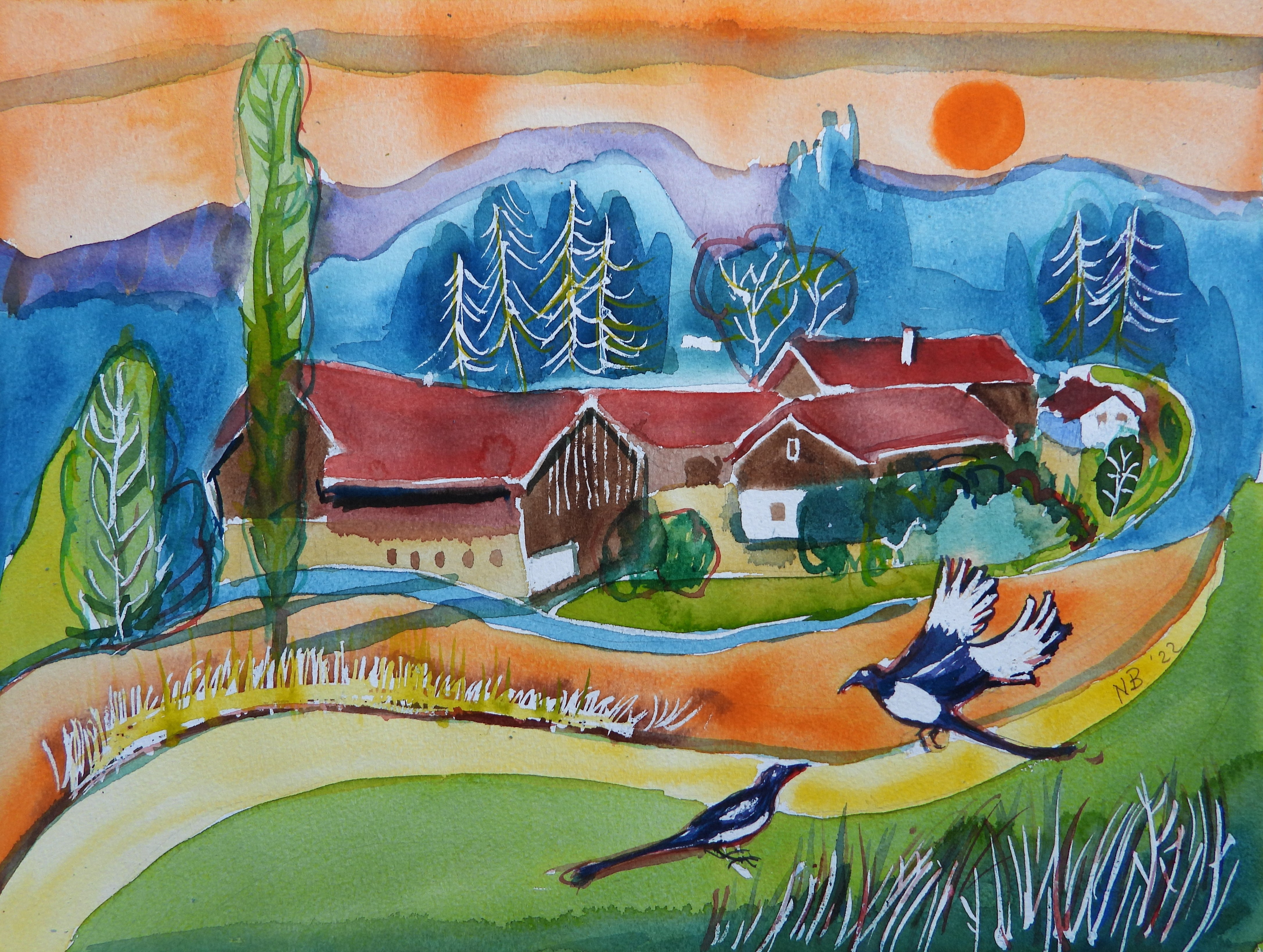 So ein Rottaler Vierseithof ist schon eine Welt für sich: schließt man beide Tore, wirkt der Innenhof wie ein Ort der Ruhe und Abgeschiedenheit. Die Sonne scheint auf die hohen Holzstapel unter dem Stadldach: Huber ist auch Waldbesitzer. In der Mitte steht ein bunter Taubenkobel. Durch das ganze Anwesen, auch durch die hölzernen Wände der Stadel weht duftende Frühlingsluft. Rauchschwalben flitzen ununterbrochen aus den Stallfenstern. Auf dem Dach hüpfen Hausrotschwänze. Die tiefe Stille wird nur vom Gesang der Vögel und dem Klappern der Ratschen unterbrochen: Es ist Karfreitag. Wir sind auf dem Niedermaierhof in Bleichenbach 7 (einem Ortsteil von Bad Birnbach) in Niederbayern.