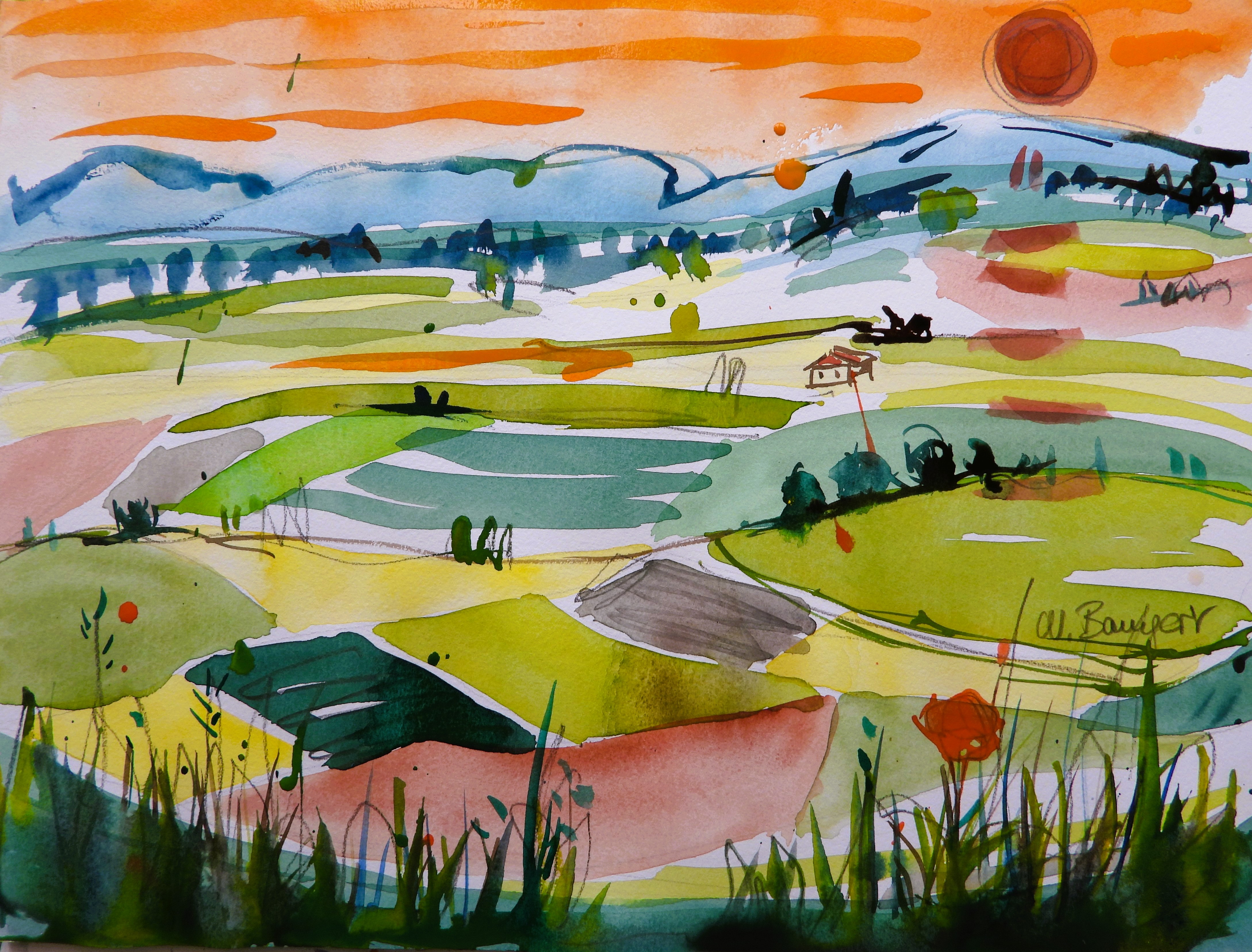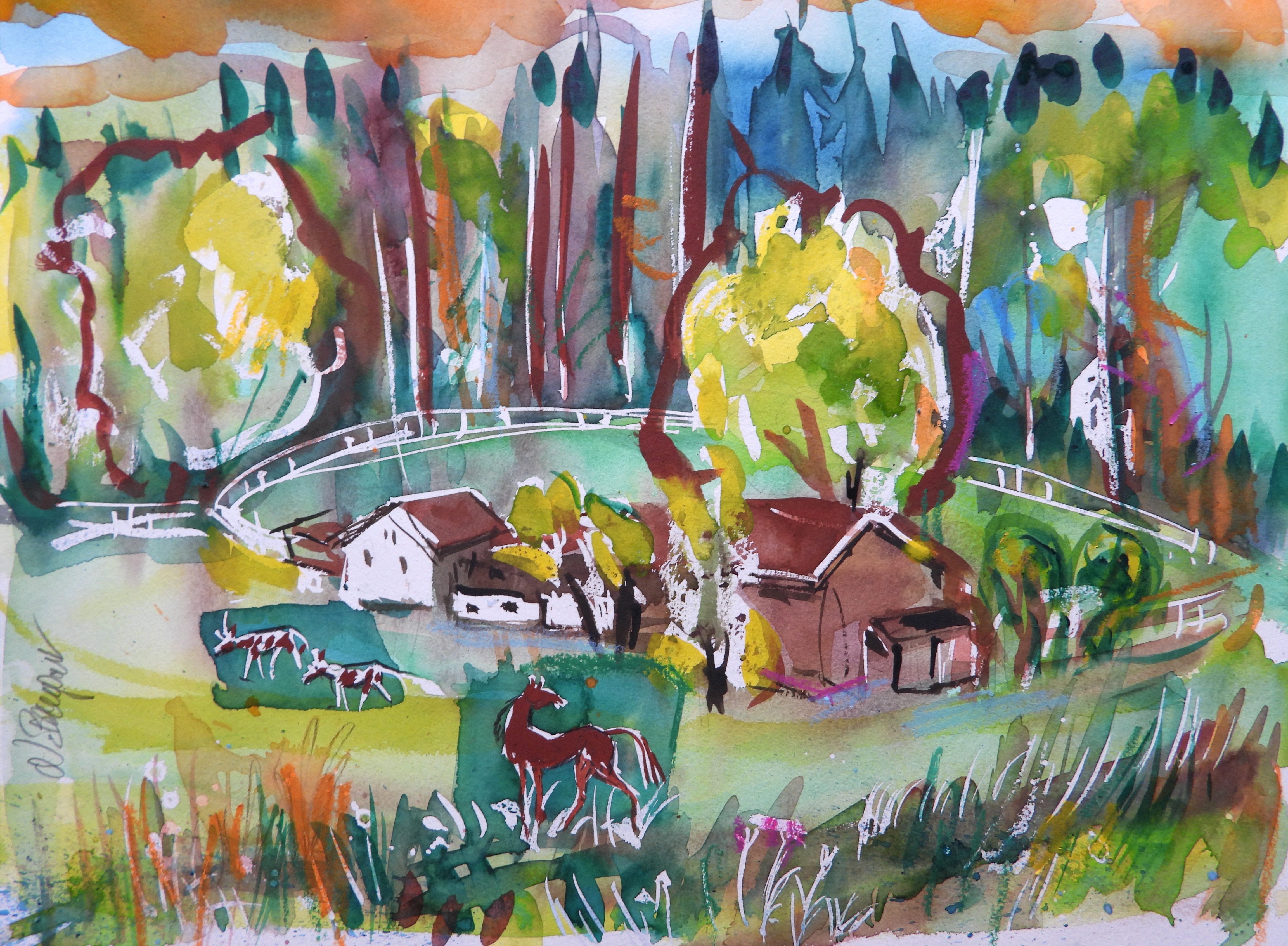 Rottaler Landschaft im Aquarell: Der Einödhof